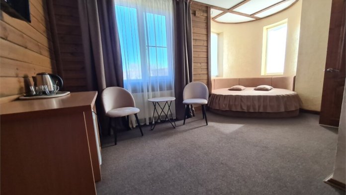 4-местный номер расположен в деревянном доме из сруба - это однокомнатный номер для размещения четырёх человек.