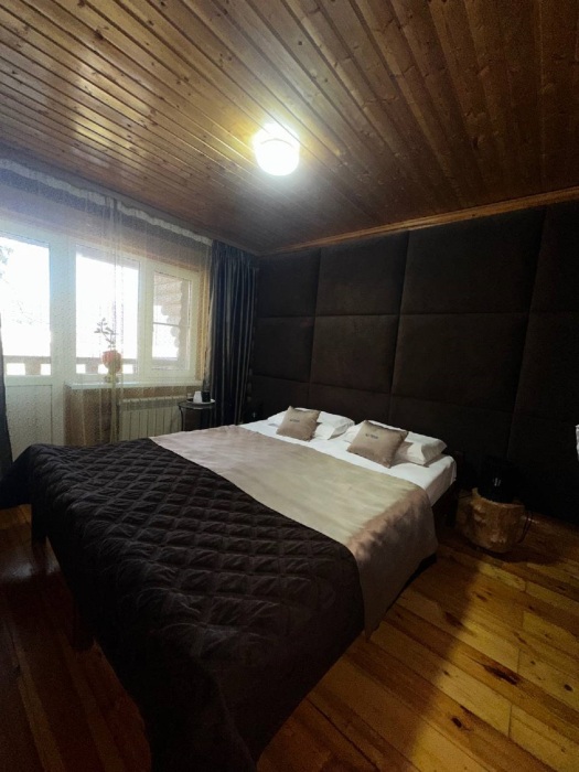 Уютный 2-комнатный номер-люкс, (основных мест 4, возможно дополнительное место - еврораскладушка), оборудованный всем необходимым для комфортного проживания. Из окна открывается потрясающий вид на горы.