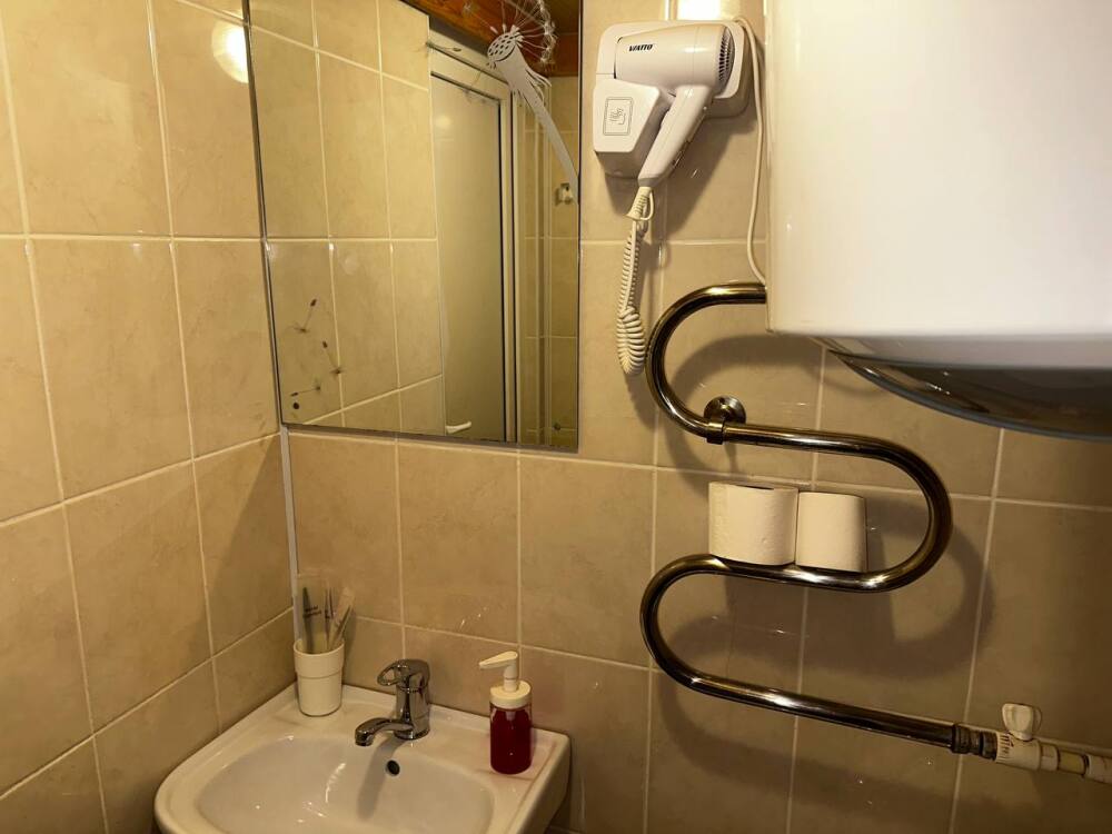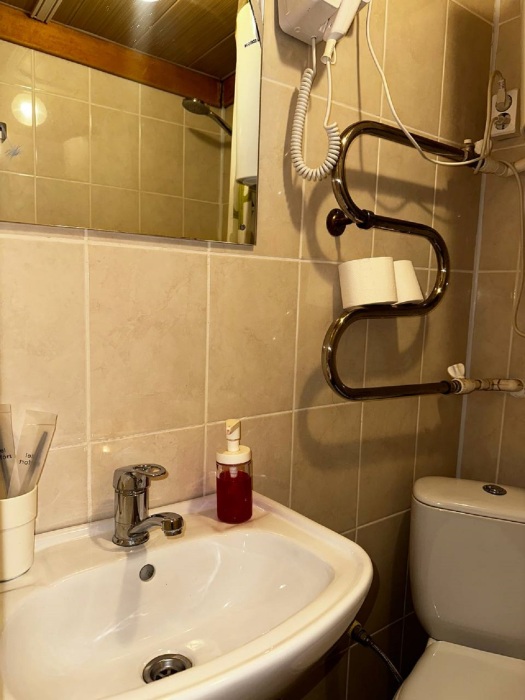 В распоряжении гостей: ванная комната (душ/туалет/раковина), одна 2-спальная кровать и 2-спальный диван, необходимые косметические и гигиенические средства (шампунь, мыло, гель), необходимый комплект домашнего текстиля, телевизор, холодильник. Фен (на ресепшене).