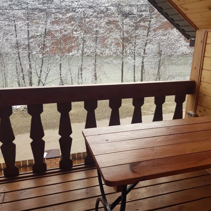 К услугам гостей комфортные номера с прекрасным видом на реку, большая благоустроенная мангальная зона, тёплые беседки, домашние завтраки, обеды, ужины и шум реки. На территории есть сад, зоны для отдыха на свежем воздухе (гамак, кресла-качалки, качели), детская площадка, бесплатный Wi-Fi, бассейн с подогревом, русская баня на дровах (платно).