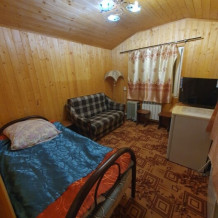 К Вашим услугам: конные прогулки, джиппинг, рафтинг, поездки на снегоходах, восхождения на горы. Также имеется баня, бассейн, мангальные зоны, комфортабельные домики с удобствами и камином.