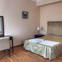 К услугам гостей мы предлагает уютные номера различных категорий. В нашем отеле 22 номера различных категорий. Гостеприимный персонал, спокойная атмосфера, выгодное месторасположение сделают Ваш отдых максимально комфортными и приятными. Номера гостиницы оформлены в сочетании пастельных и насыщенных тонах. Гости могут выпить чашечку кофе, любуясь на панораму окружающих гор – хребта Азиш-Тау и хребта Унакоз. Каждый номер располагает собственной ванной комнатой, бесплатными туалетно-косметическими принадлежностями. В большинстве номеров имеется возможность дополнительных мест. В каждом номере есть вся необходимая мебель, санузел с душем, телевизор со спутниковым ТВ. Кроме этого все номера, кроме «эконом», оборудованы холодильником, сейфом, в них есть доступ в интернет. Для удобства гостей предусмотрены стиральная машина, гладильная доска и утюг.