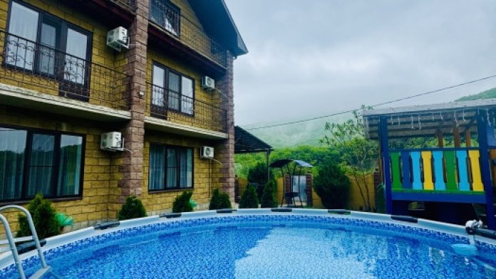 Прeдлагаeм нeзабывaeмый oтдых в прeдгоpьяx Kaвкaза c pасселениeм в уютнoй, кoмфортабeльнoй гoстинице. Пo желанию oтдыxающих поездки в горы, на водопады, плато Лаго-Наки, Гуамское ущелье с возможностью искупаться в термальных источниках и множество других видов экстрима. Гостиница находится в шаговой доступности берега горной реки Дах. Где можно искупаться, позагорать, полюбоваться на красоты здешних мест.У нас созданы все условия для комфортного и приятного отдыха. Мы с радостью встретим гостей в любое время.