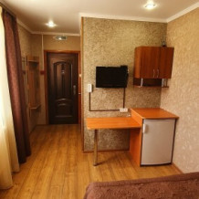 Номер люкс с кухней. В номере: двухспальная кровать, односпальная кровать и раскладное кресло. Телевизор, холодильник, интернет, санузел. Бесплатная парковка, мангал на территории.