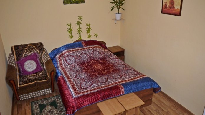 Стандартный двухместный номер. В номере двухспальная кровать и раскладное кресло. Телевизор, холодильник, интернет, санузел. Бесплатная парковка на территории.