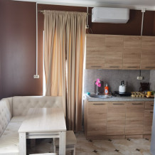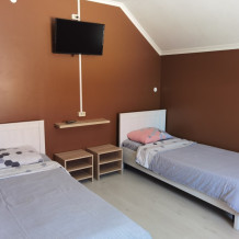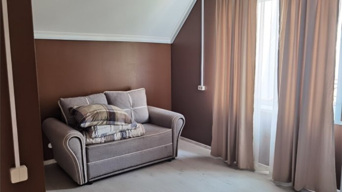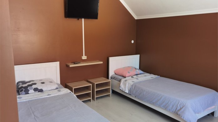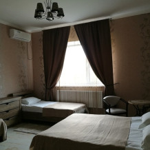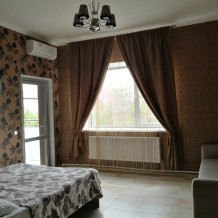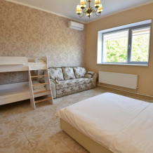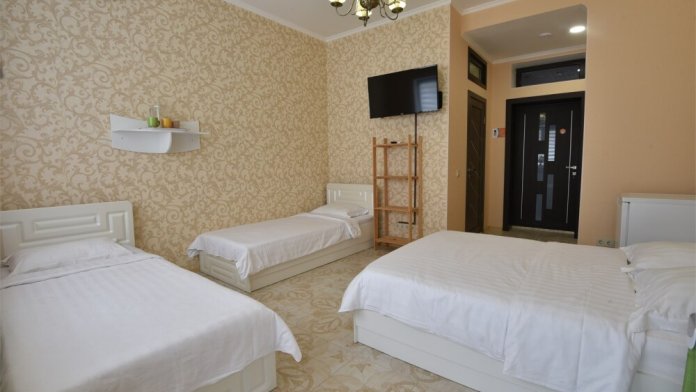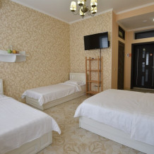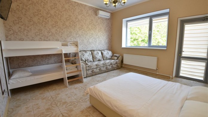 Семейный четырех местный номер на первом этаже с индивидуальным входом с мощными конвекторными сплит системами с ночным режимом. Высокий потолок дает чувство комфорта. Алюминиевые окна с мультисистемными стекло пакетами не даст проникнуть в ваш номер жаре с улицы.