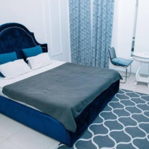 Комфорт номера создает дизайн в стиле неоклассики, представленном в синих и белых цветах, красивая и со вкусом подобранная мебель.