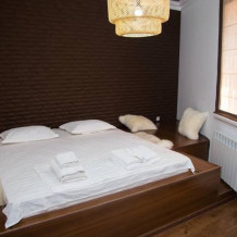 Двухкомнатный номер категории Полулюкс - это просторный номер с двуспальной кроватью и гостевой зоной, представленной журнальным столиком и раскладным угловым диваном, с зоной ТВ, гардеробным шкафом и собственной ванной комнатой.