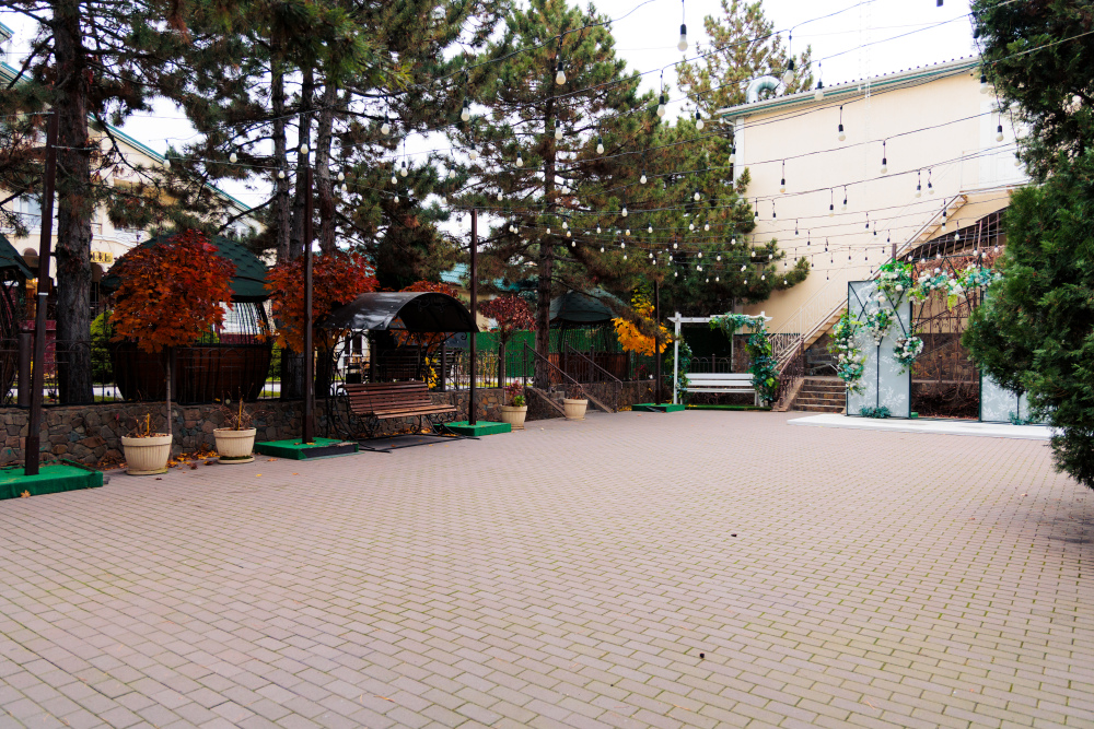 К услугам наших гостей закрытая благоустроенная территория площадью 12 000м2. На территории гостиницы расположены летний бар, беседки для отдыха, бильярдный клуб, банька на дровах, шашлычный двор, ресторан.