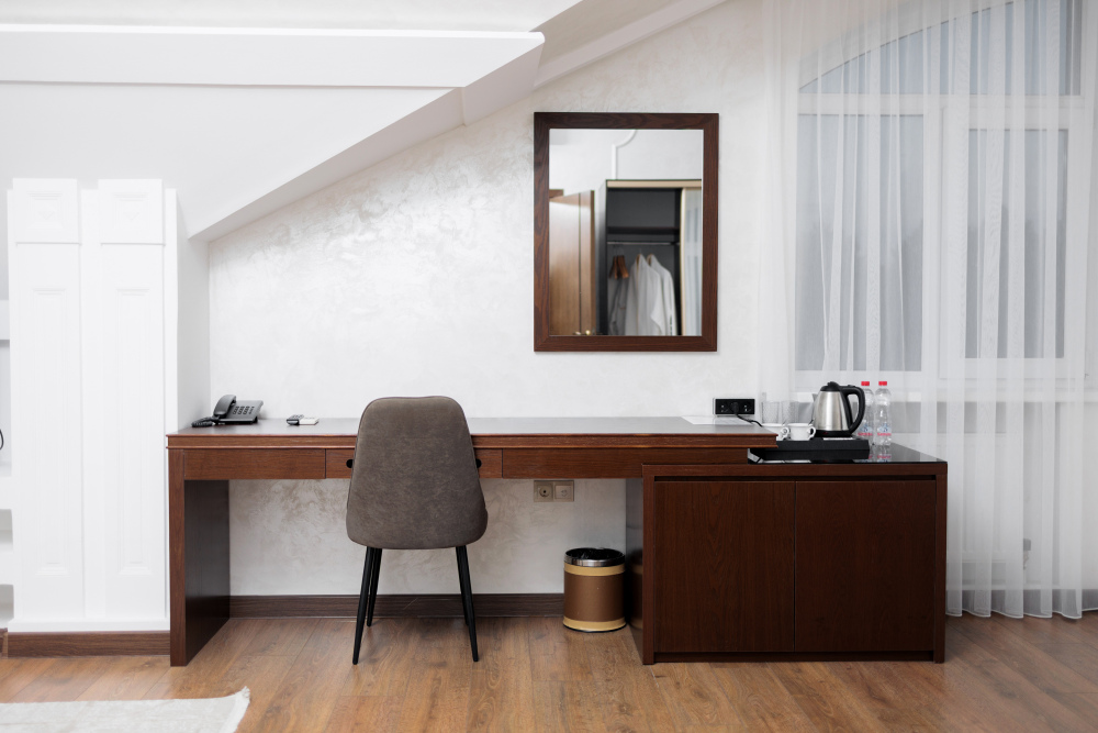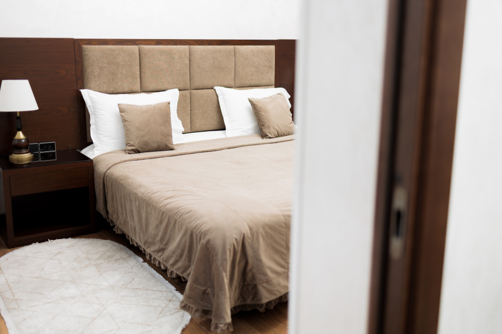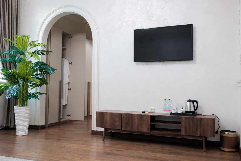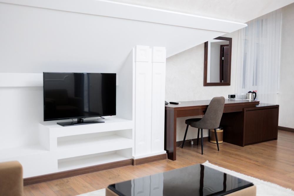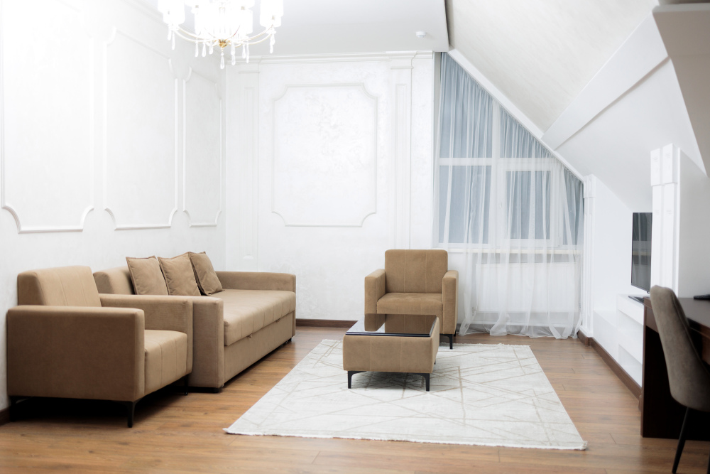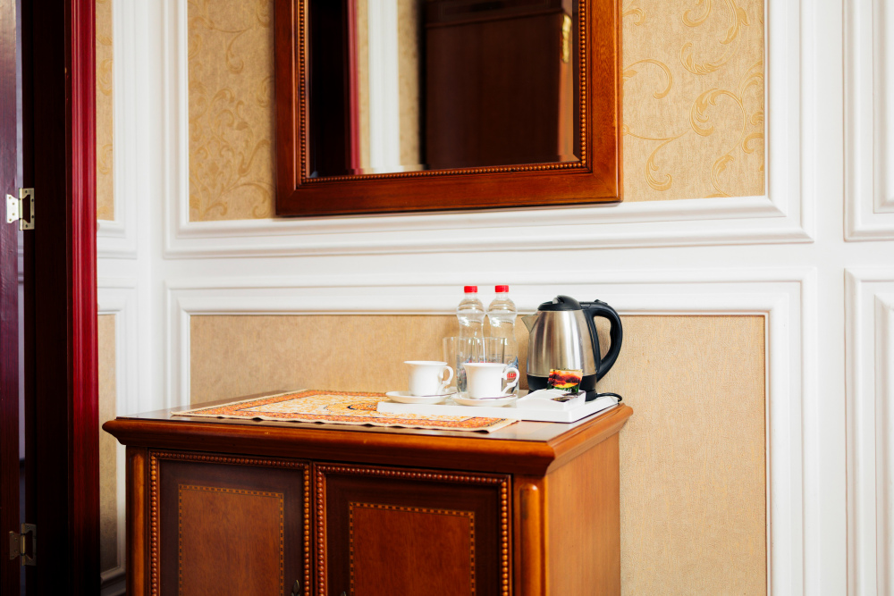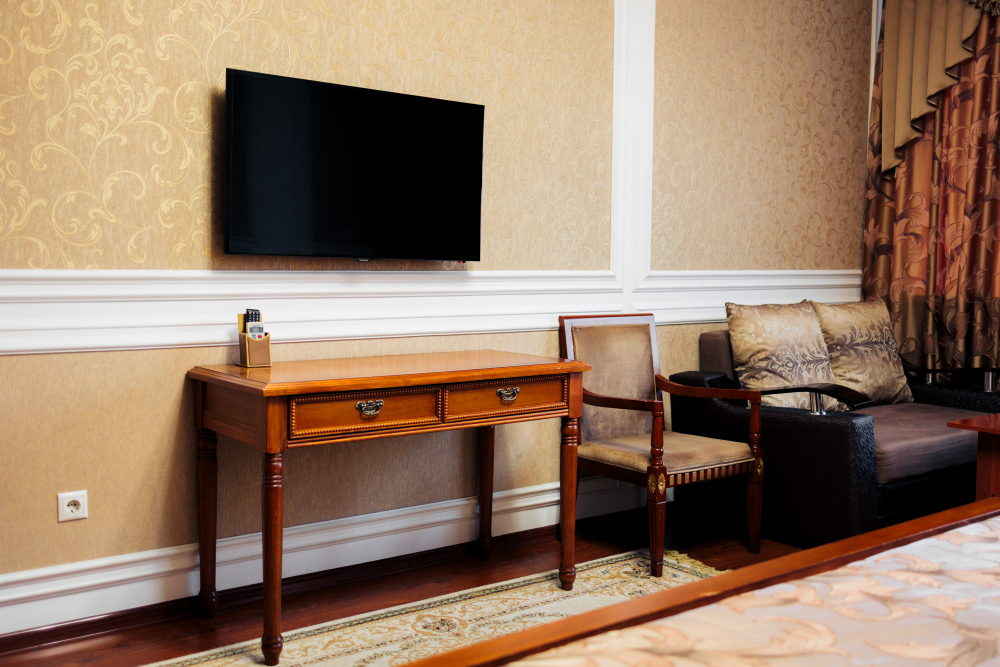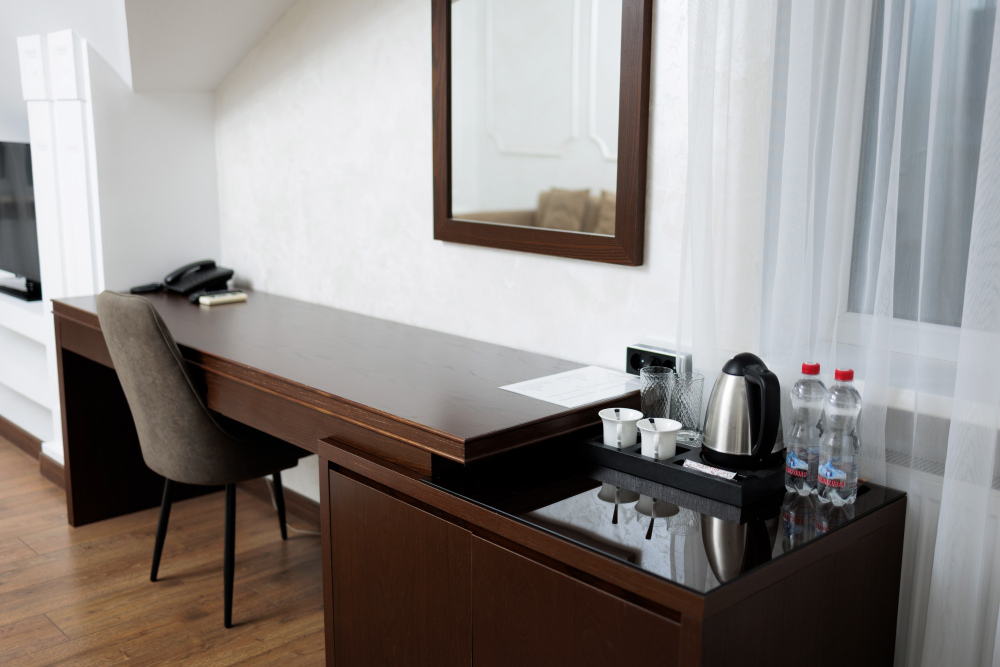 Максимальный уровень комфорта в гостинице. Две отдельные комнаты: спальня и гостиная. Подходит для длительного проживания, деловых гостей высокого уровня, семейных туристов. Пространство, приватность, удобство для работы и отдыха. Номер, в котором можно спокойно жить и принимать гостей.