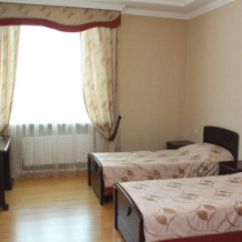 Современные однокомнатные номера с отдельной зоной отдыха. В номерах имеются кондиционеры, телевизоры, холодильники и телефоны, кровати 1800х2000, тумбочки прикроватные, шкаф плательный, стол письменный. В зоне отдыха – диван и 2 кресла, журнальный столик. В ванной комнате – ванна, фен, зеркало, санузел, полный комплект туалетных принадлежностей, 2 комплекта полотенец, по 2 шт. халата и тапочек.