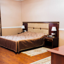ЛЮКС – однокомнатный – номера в современном классическом стиле. Оснащены кондиционерами, телевизорами, холодильники и телефоном. В номере данной категории двуспальная кровать кровать 1800х2000, тумбочки прикроватные, шкаф, кресла, стол письменный и журнальный тумбы под Т/В и для багажа. В ванной комнате – душевая, фен и зеркало, санузел, полный комплект туалетных принадлежностей, по 3 комплекта полотенец (для лица и тела) и ножное, халаты, тапочки.