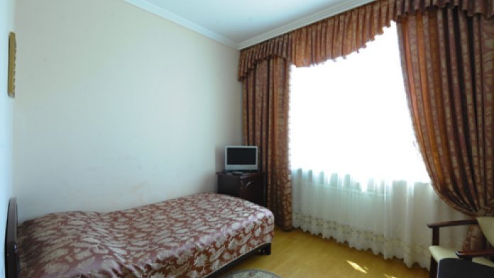 В каждом номере по 2 кондиционера, 2 телевизора, шкаф плательный, диван и два кресла, журнальный и туалетный столики, холодильник и телефон, кровать 1800х2000, тумбочки прикроватные. В ванной комнате – ванна, санузел с зеркалом и феном, полный комплект туалетных принадлежностей, по 3 комплекта полотенец (для лица и тела) и ножное, по 2 шт. халата и тапочек. В номерах чайники электрические с посудой чайной и столовой, чай, сахар и вода питьевая.