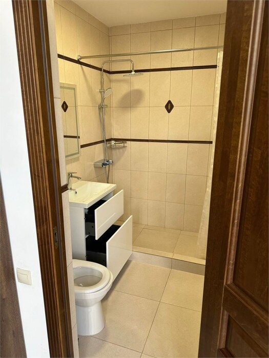 В ванной - набор полотенец, гигиенические принадлежности, фен.