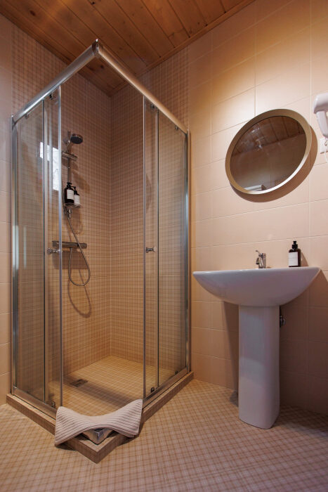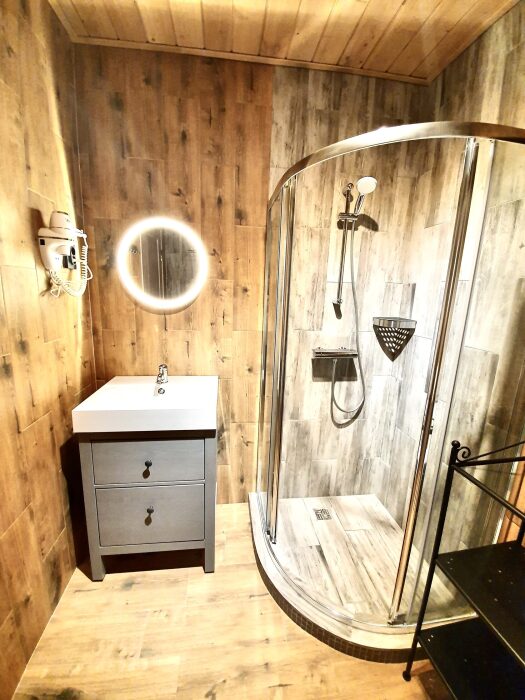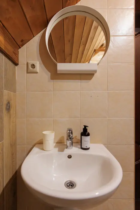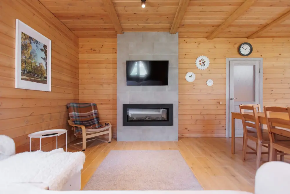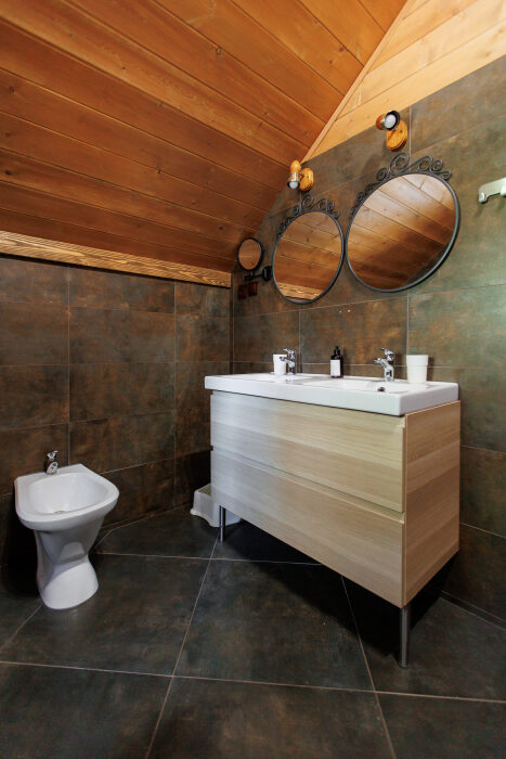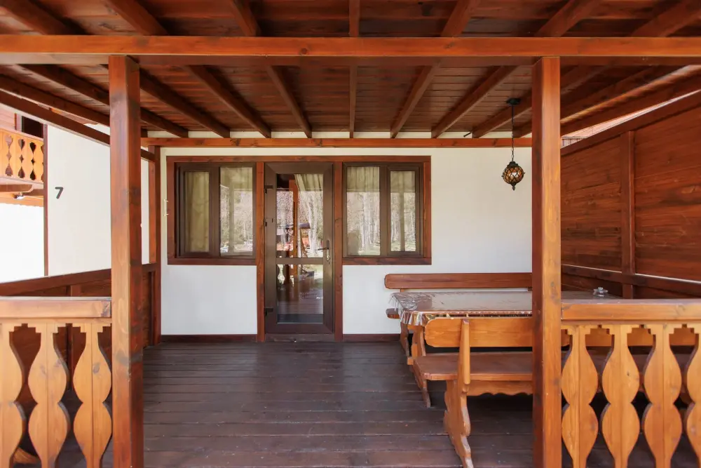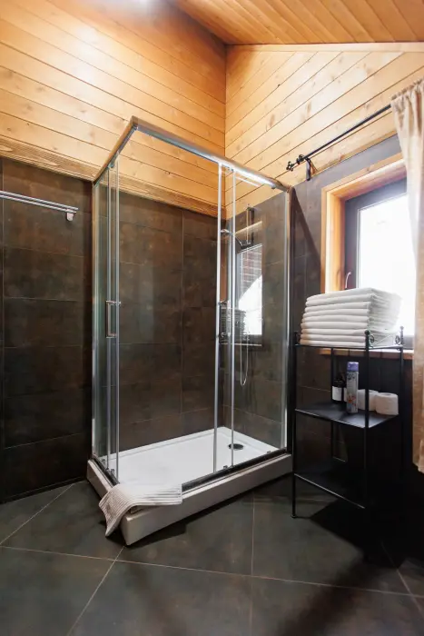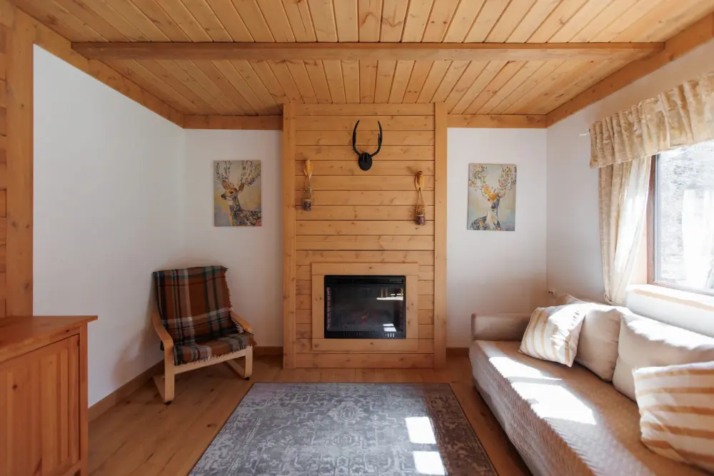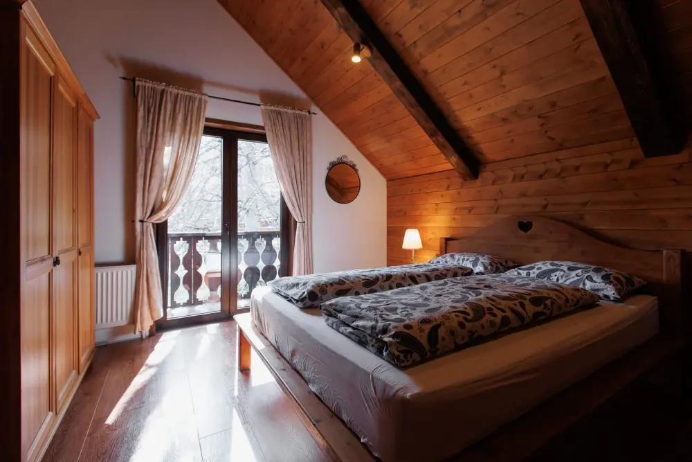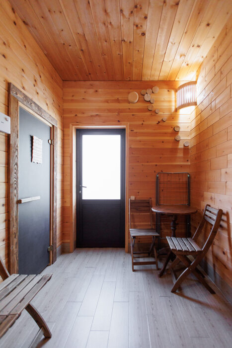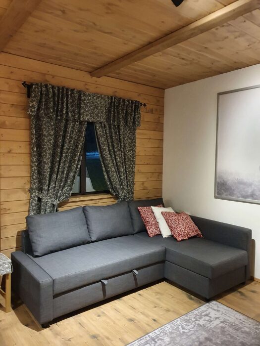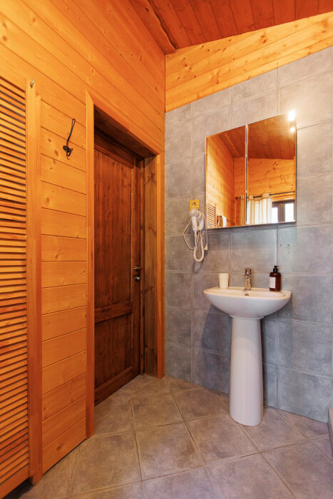 Удобства в шале: отопление (батареи, теплые полы), баня и чан (оплачивается дополнительно), постельное белье, полотенца, плита для приготовления пищи, посуда, столовые приборы, кухонные принадлежности, моющие принадлежности, электрокамин, терраса, обеденная зона на улице.