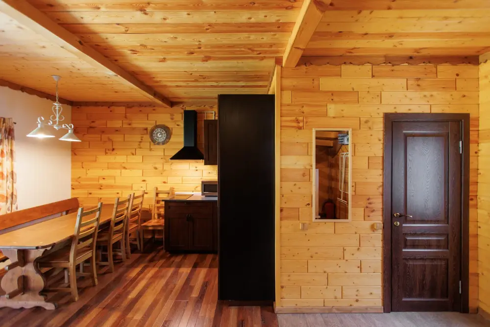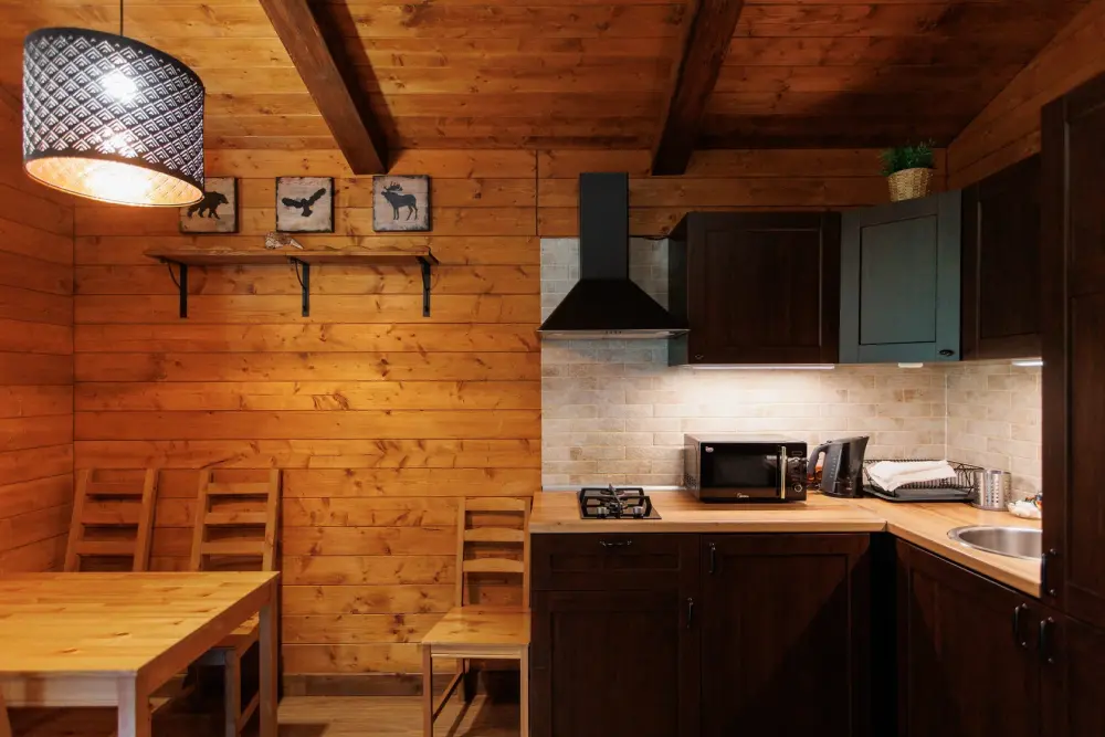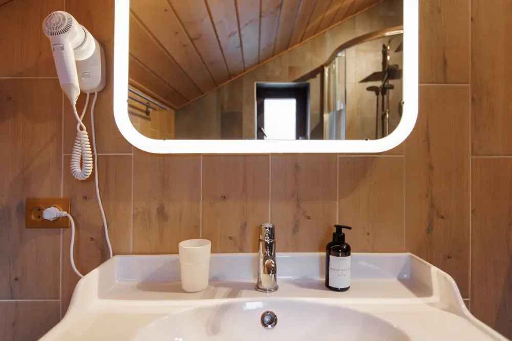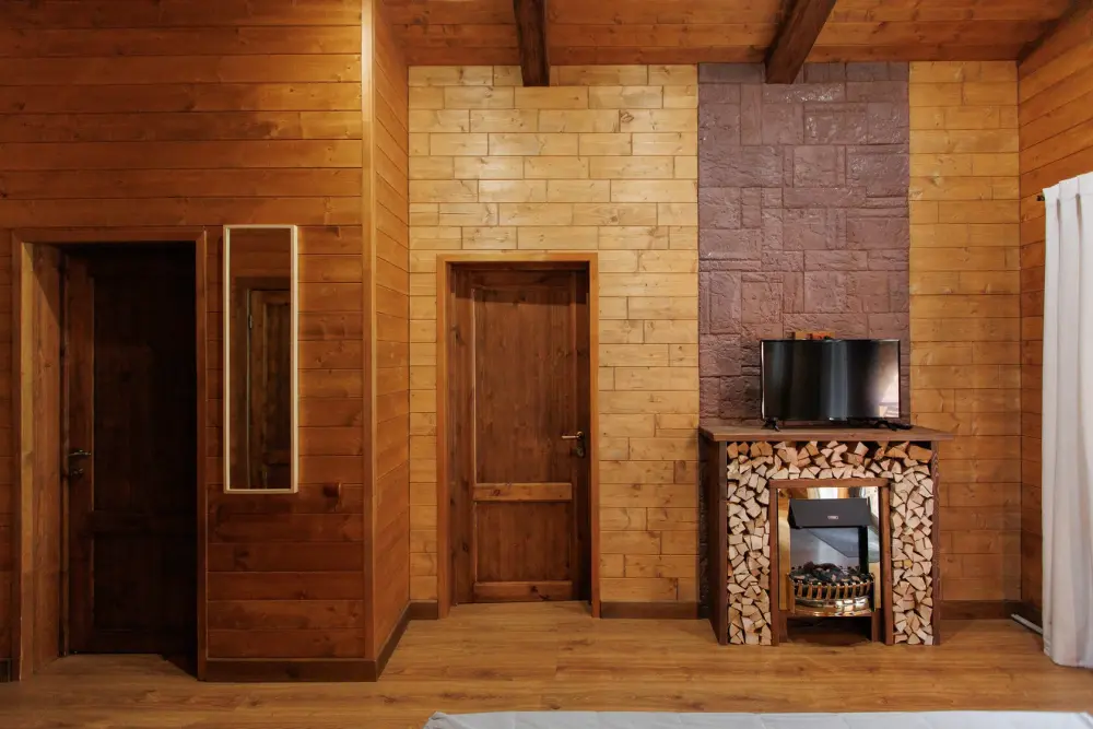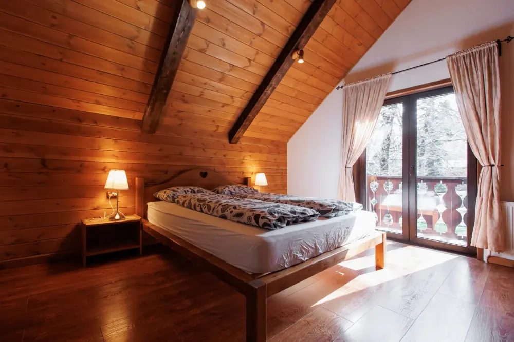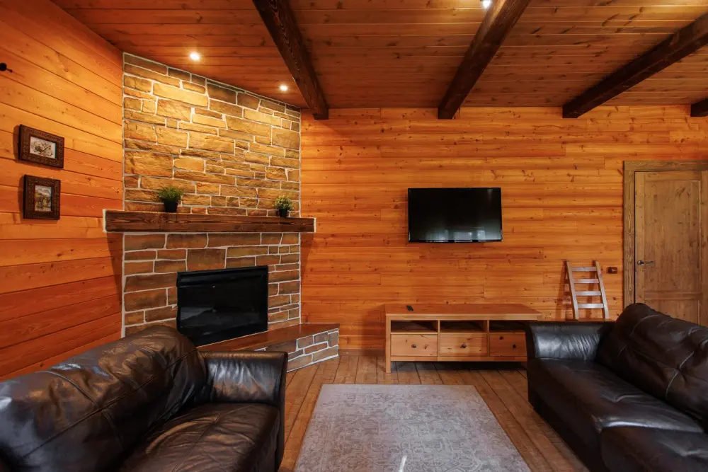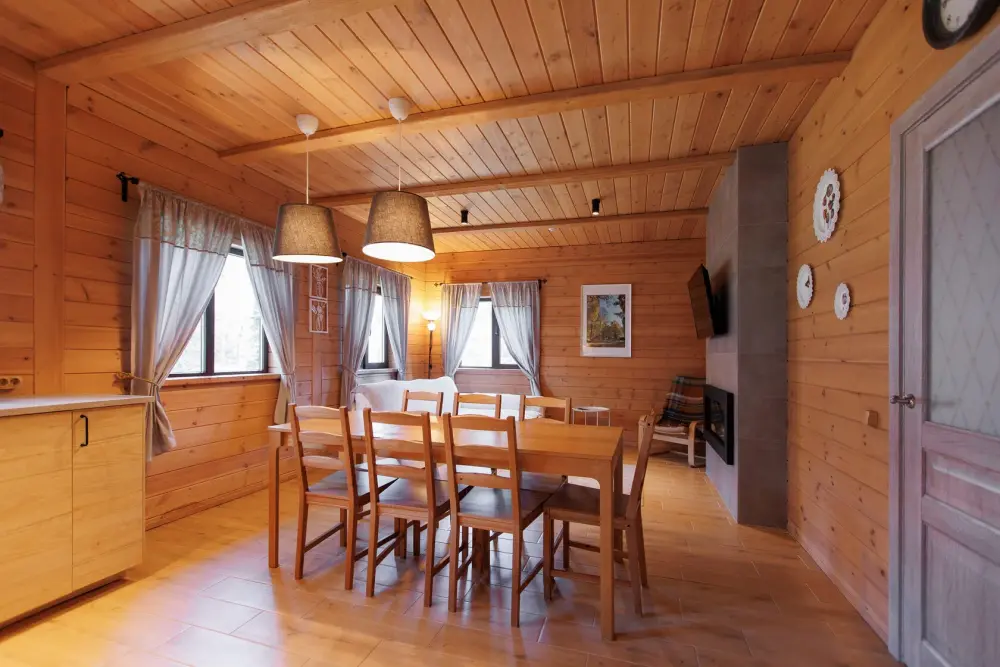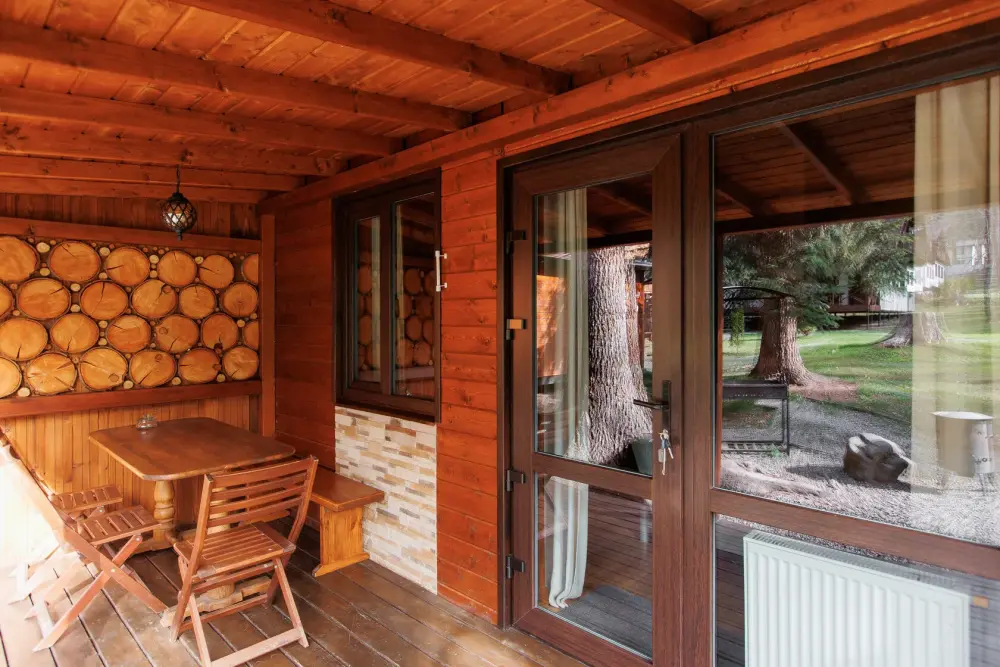 Удобства в шале: отопление (батареи, теплые полы), баня и чан (оплачивается дополнительно), постельное белье, полотенца, плита для приготовления пищи, посуда, столовые приборы, кухонные принадлежности, моющие принадлежности, электрокамин, терраса, обеденная зона на улице.
