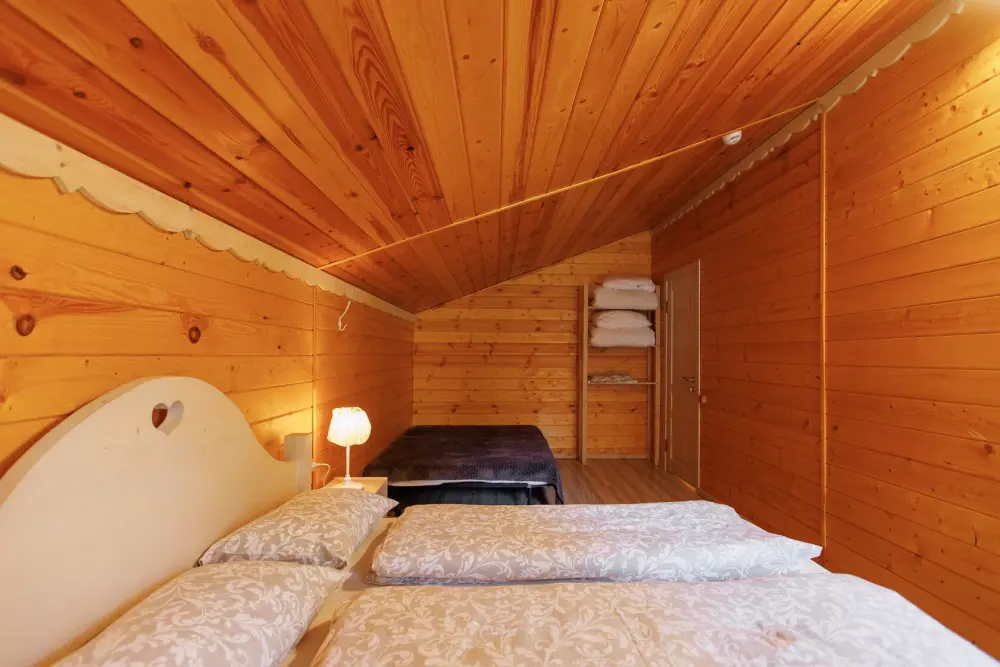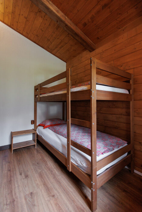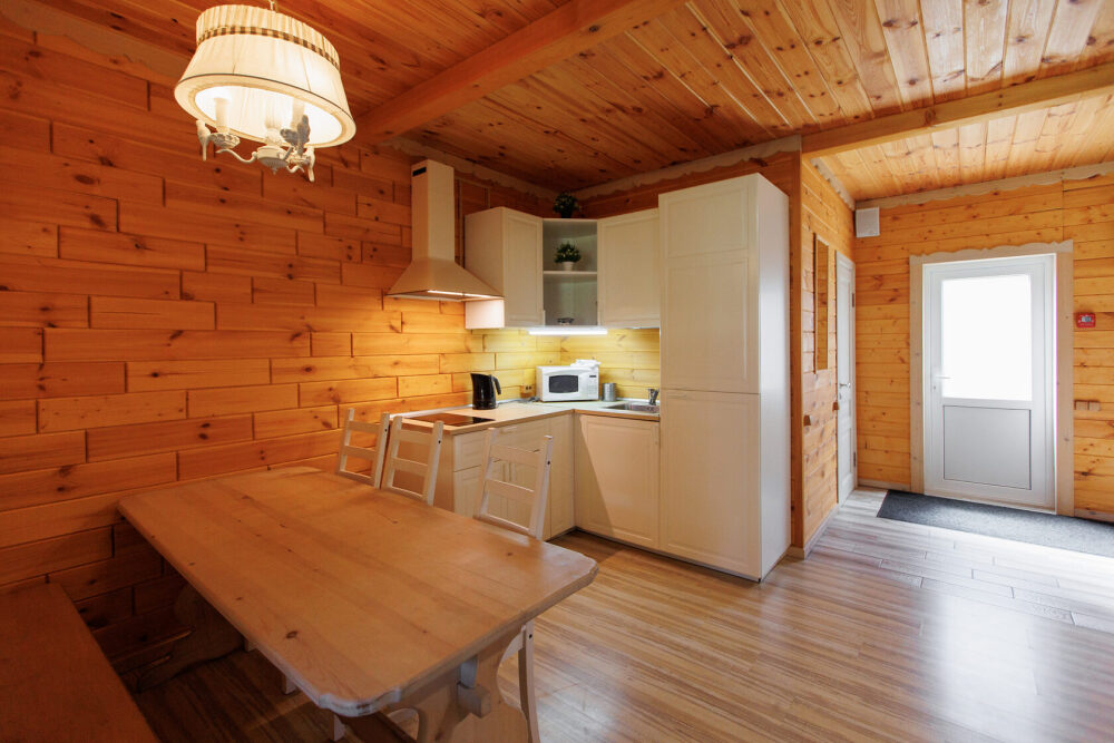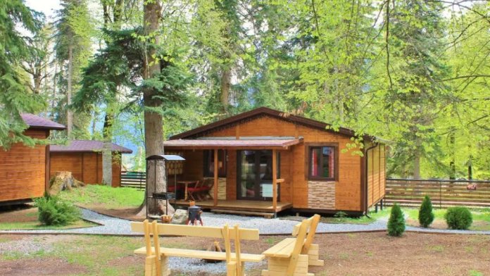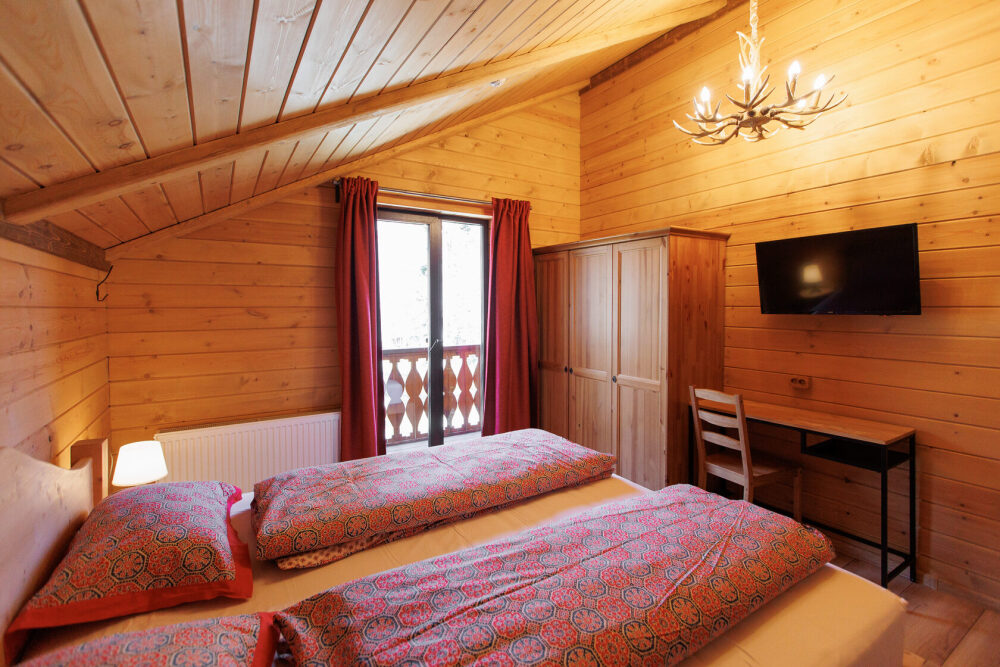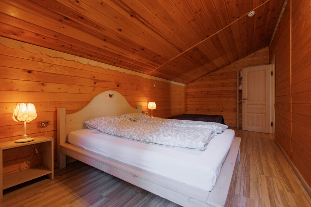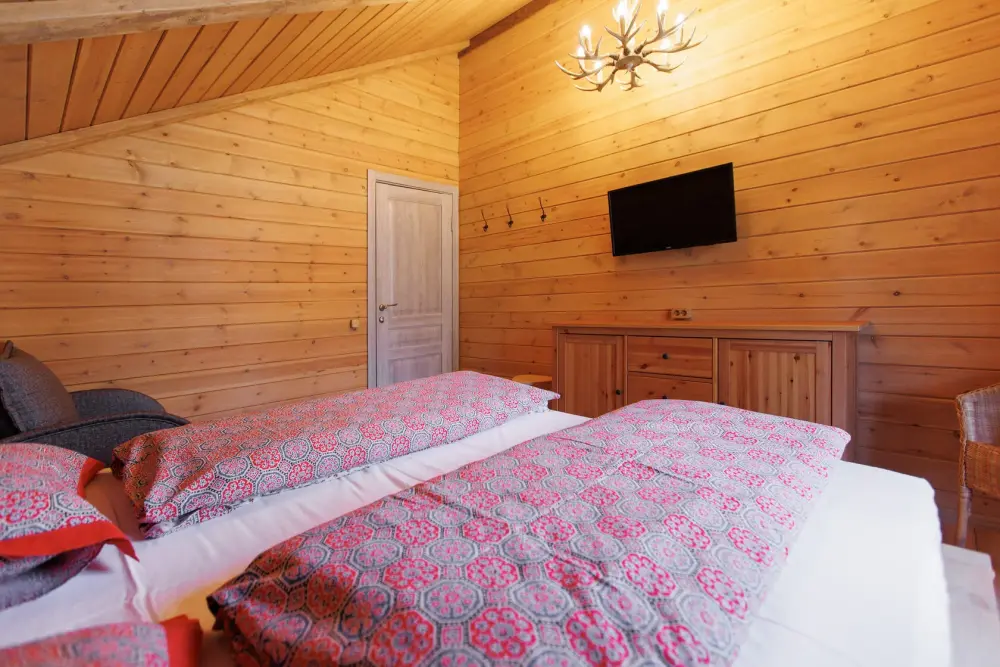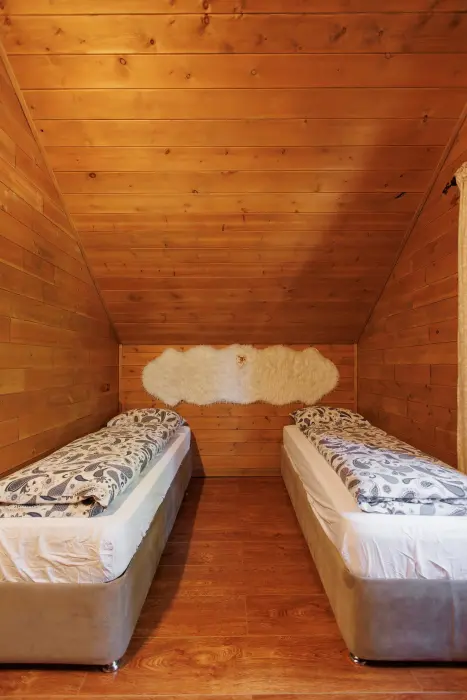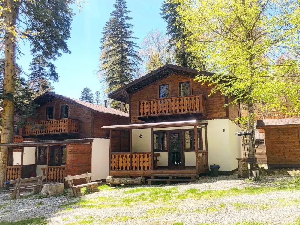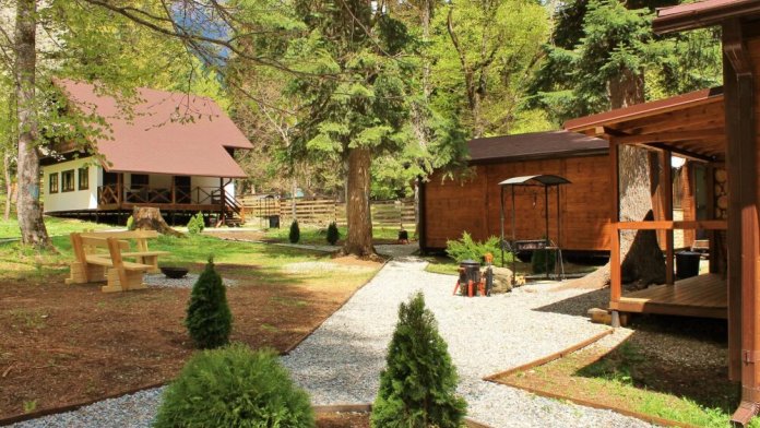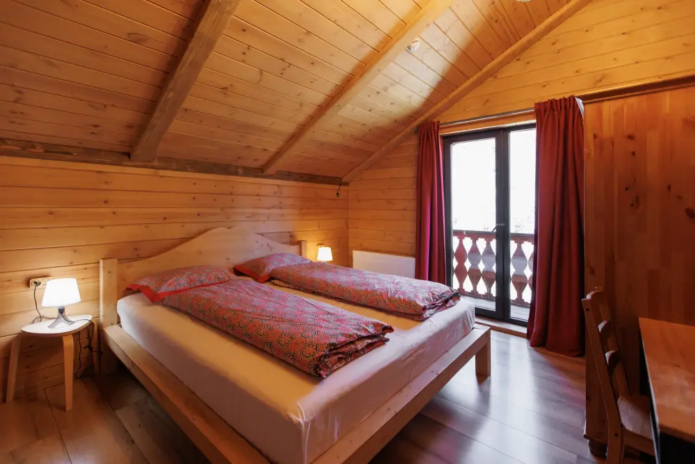 Для размещения гостям предлагается шале вместимостью от 7 до 11 гостей. Все они оснащены: гостиной с диваном, электрокамином и телевизором; оборудованной кухней; санузлами; террасой с мангальной зоной. Детям от 0 до 5 лет предоставляется детская кроватка + постельное белье, детский обеденный стульчик по запросу и при наличии возможности, бесплатно.