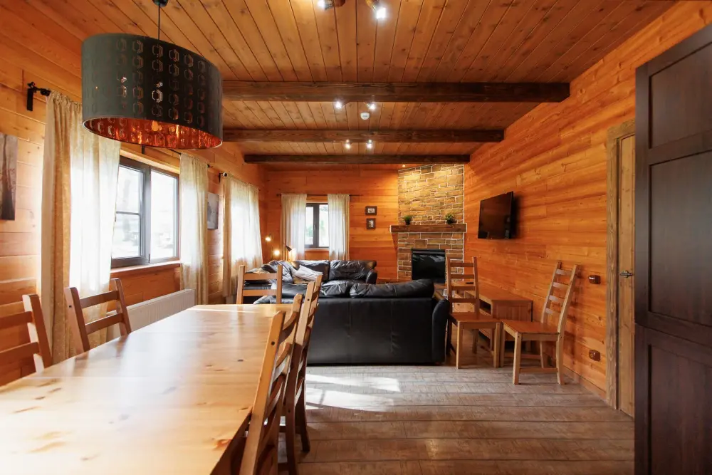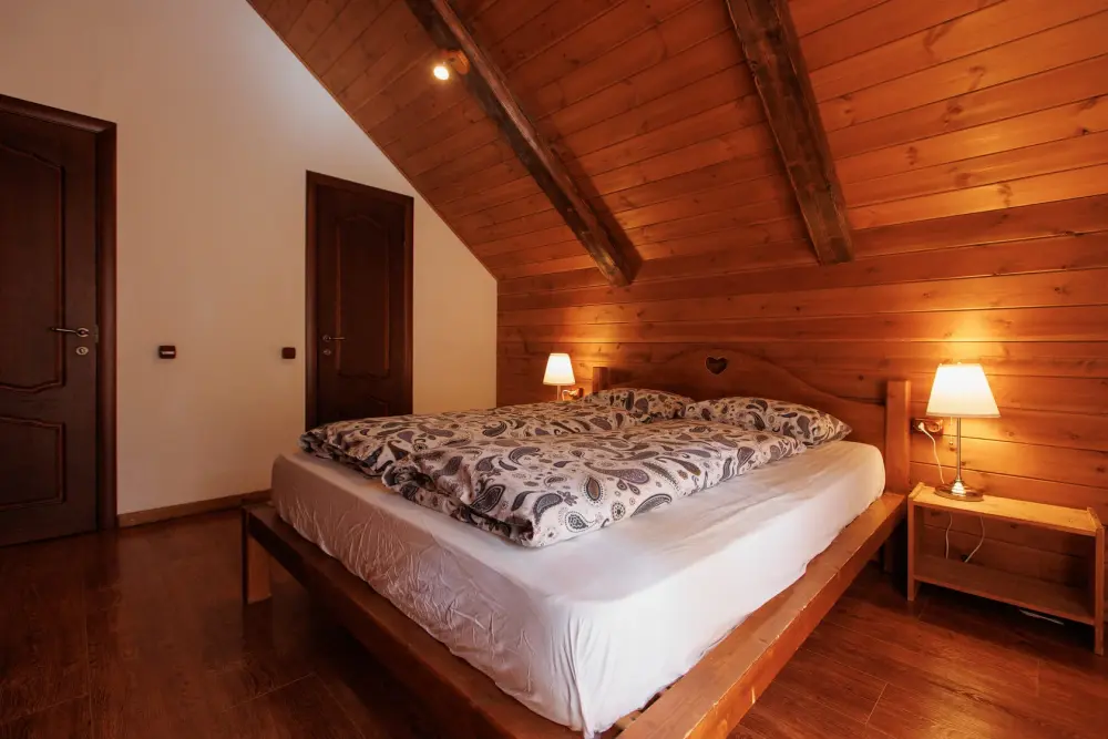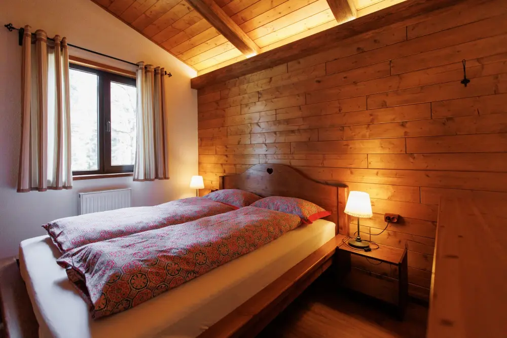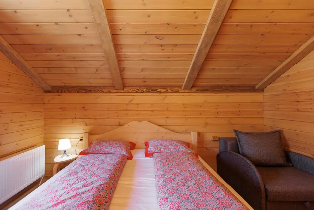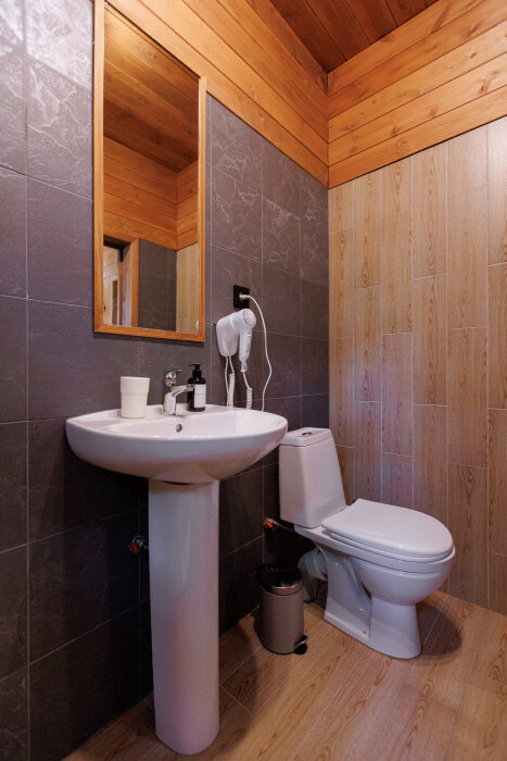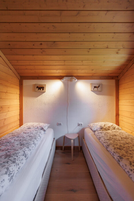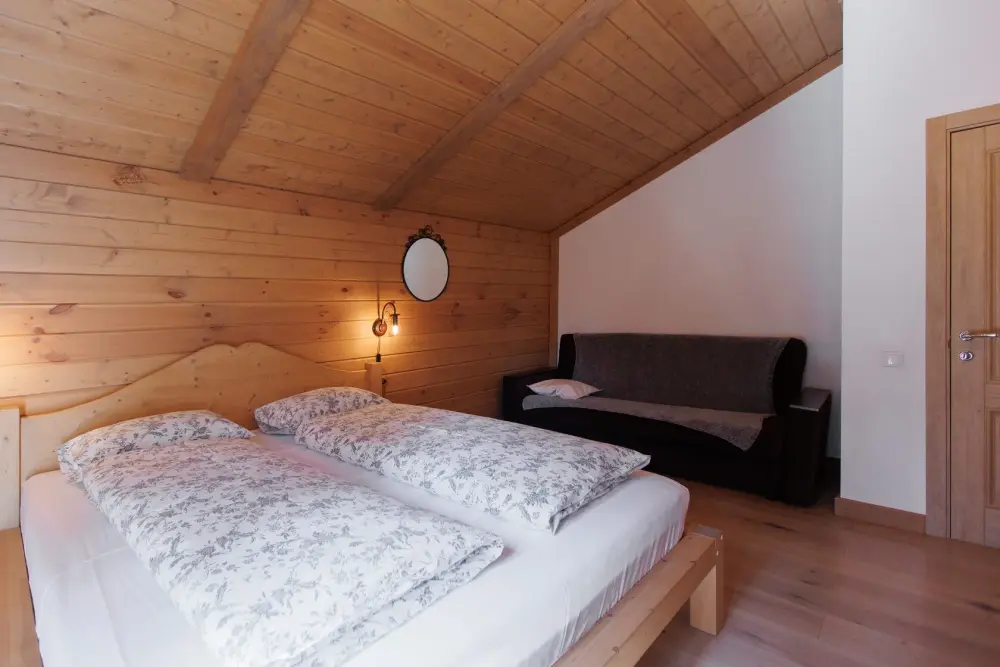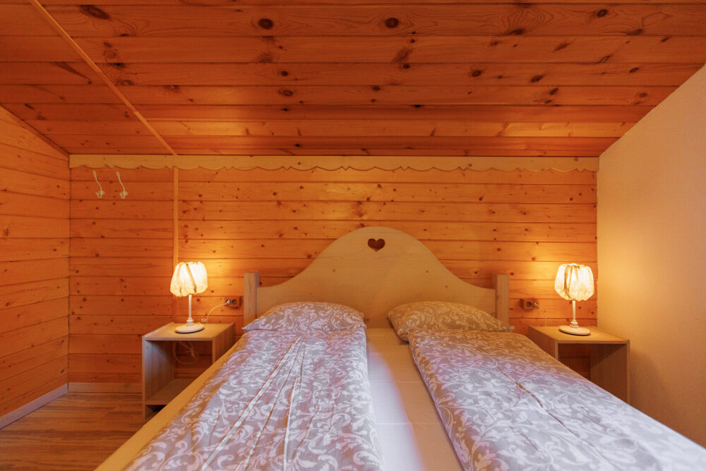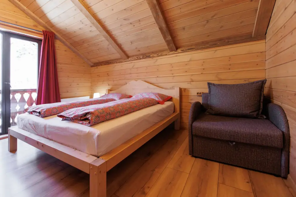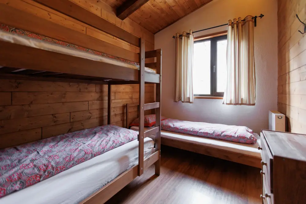 Для размещения гостям предлагается шале вместимостью от 7 до 11 гостей. Все они оснащены: гостиной с диваном, электрокамином и телевизором; оборудованной кухней; санузлами; террасой с мангальной зоной. Детям от 0 до 5 лет предоставляется детская кроватка + постельное белье, детский обеденный стульчик по запросу и при наличии возможности, бесплатно.