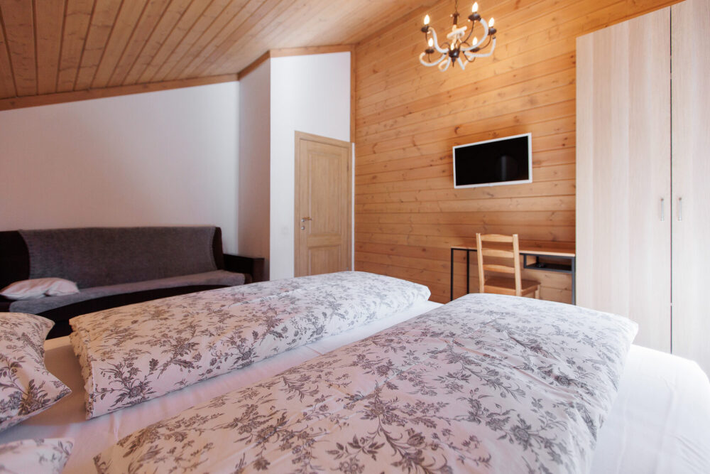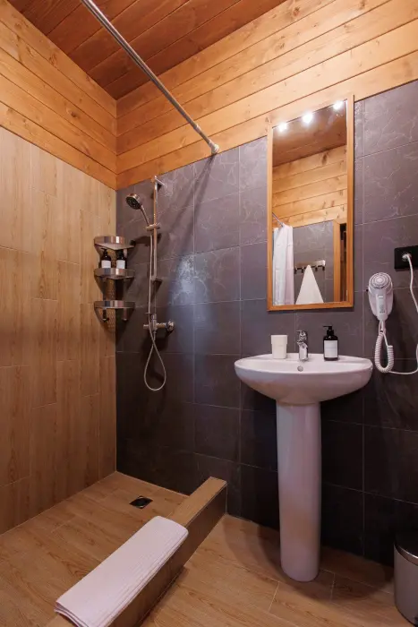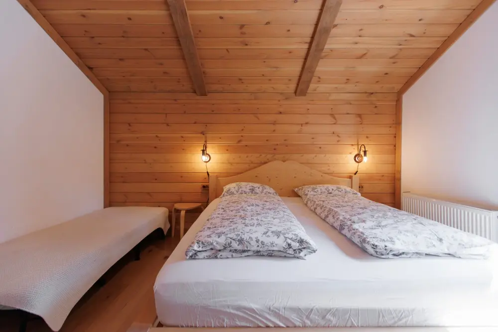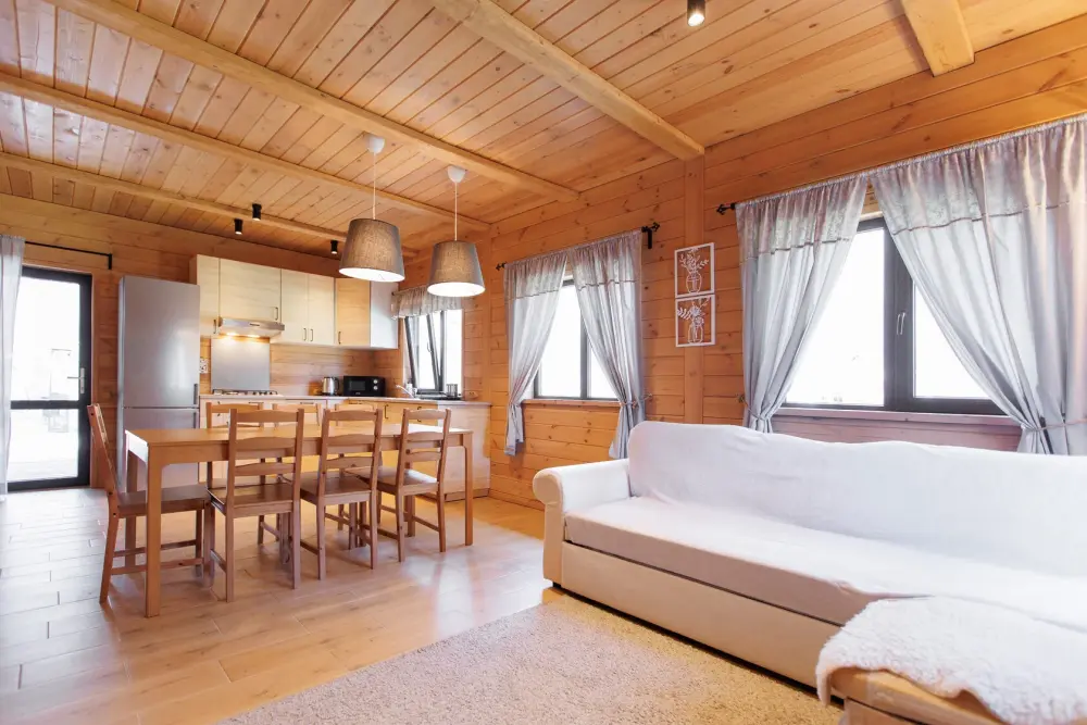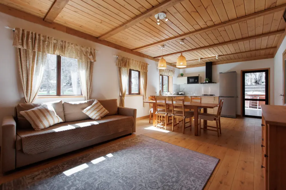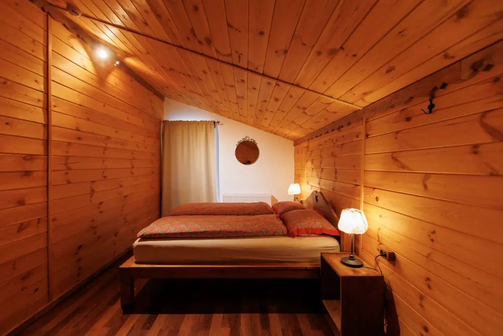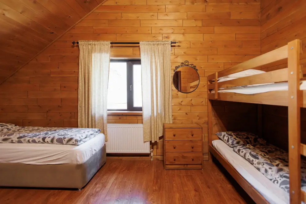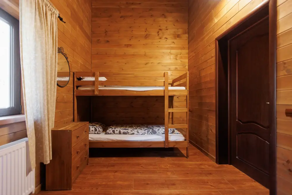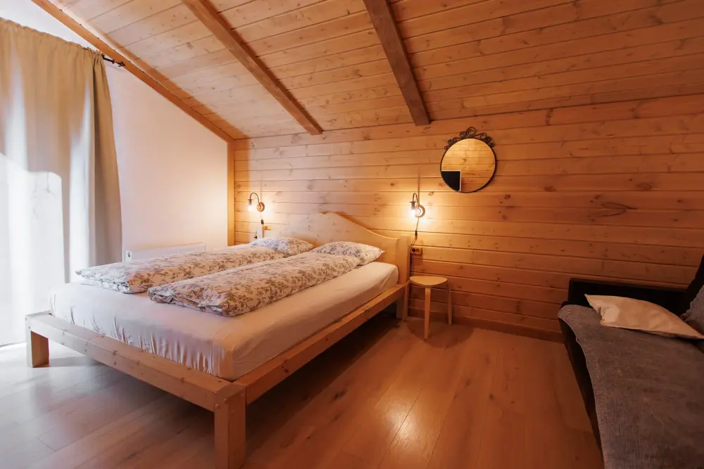 Для размещения гостям предлагается шале вместимостью от 7 до 11 гостей. Все они оснащены: гостиной с диваном, электрокамином и телевизором; оборудованной кухней; санузлами; террасой с мангальной зоной. Детям от 0 до 5 лет предоставляется детская кроватка + постельное белье, детский обеденный стульчик по запросу и при наличии возможности, бесплатно.