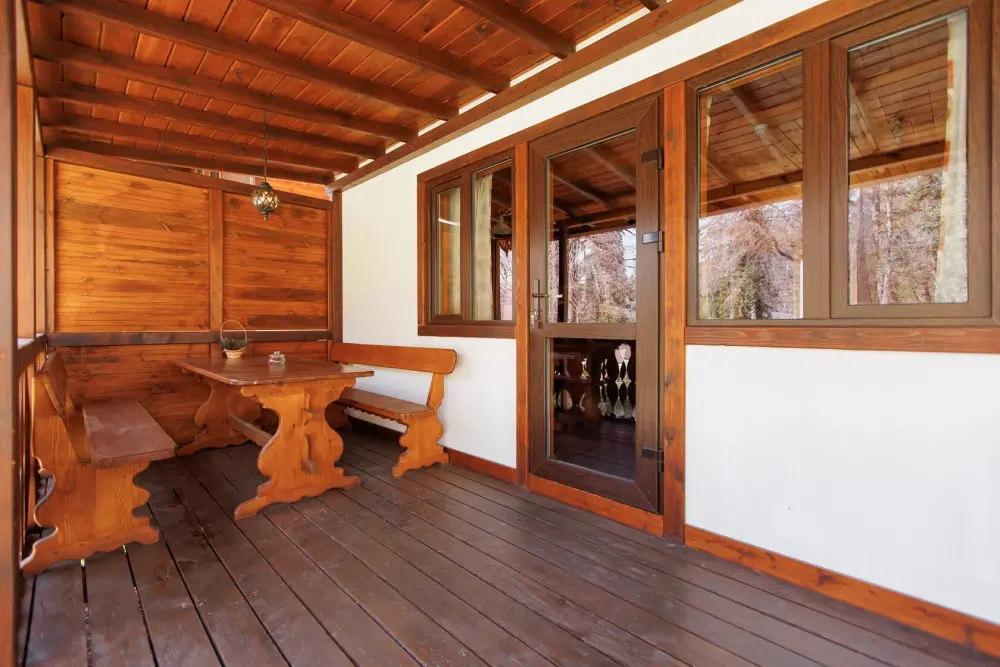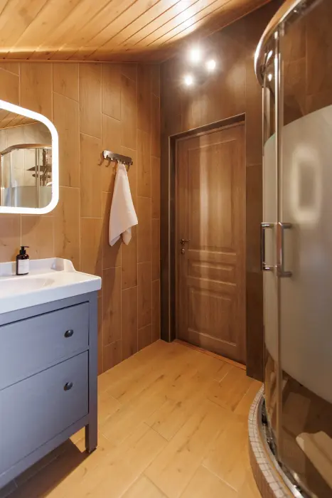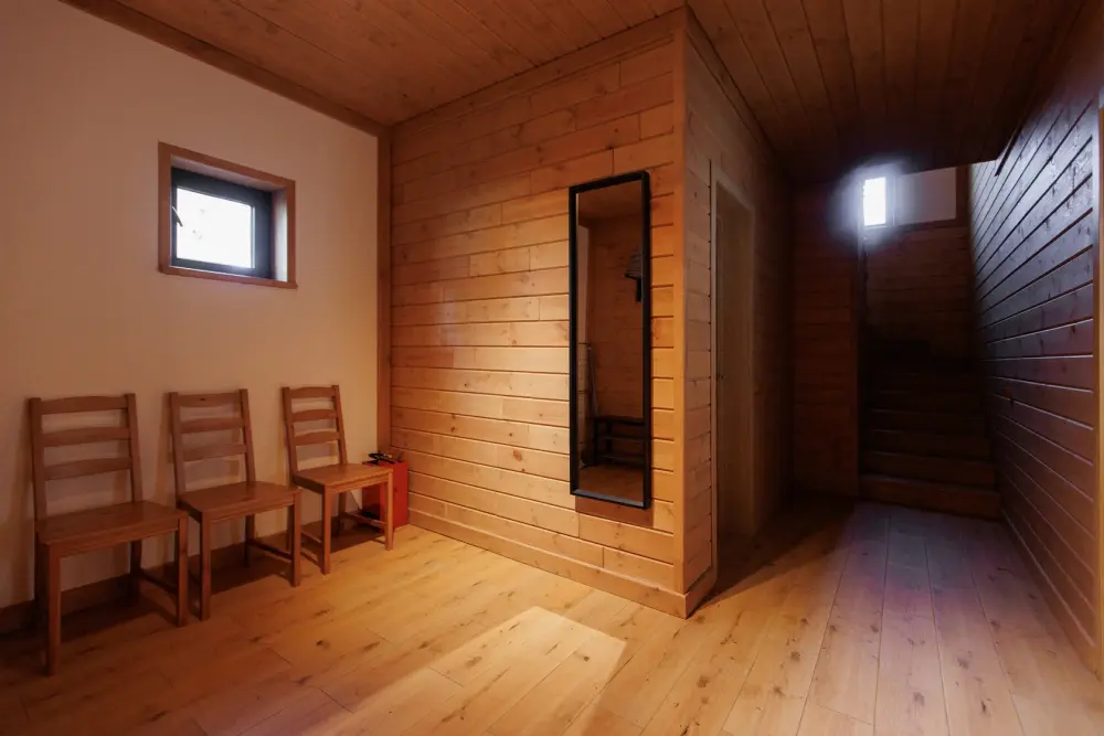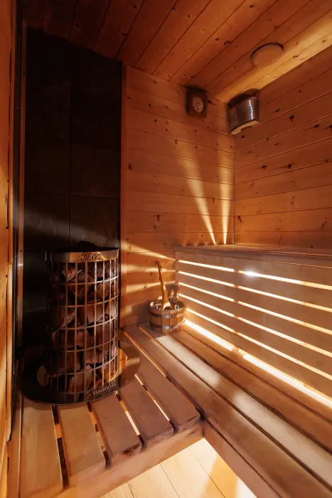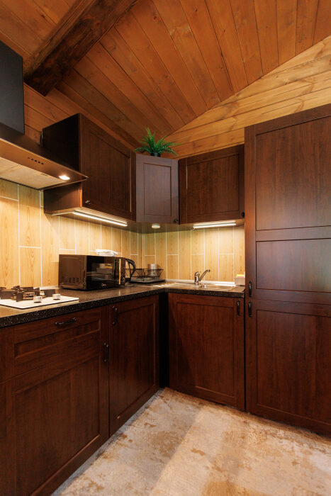 Удобства в шале: отопление (батареи, теплые полы), сауна (оплачивается дополнительно), постельное белье, полотенца, плита для приготовления пищи, посуда, столовые приборы, кухонные принадлежности, моющие принадлежности, электрокамин, терраса, обеденная зона на улице.