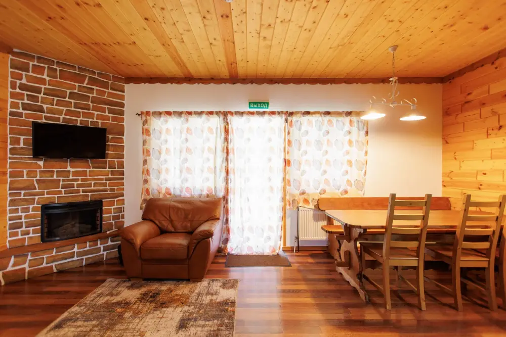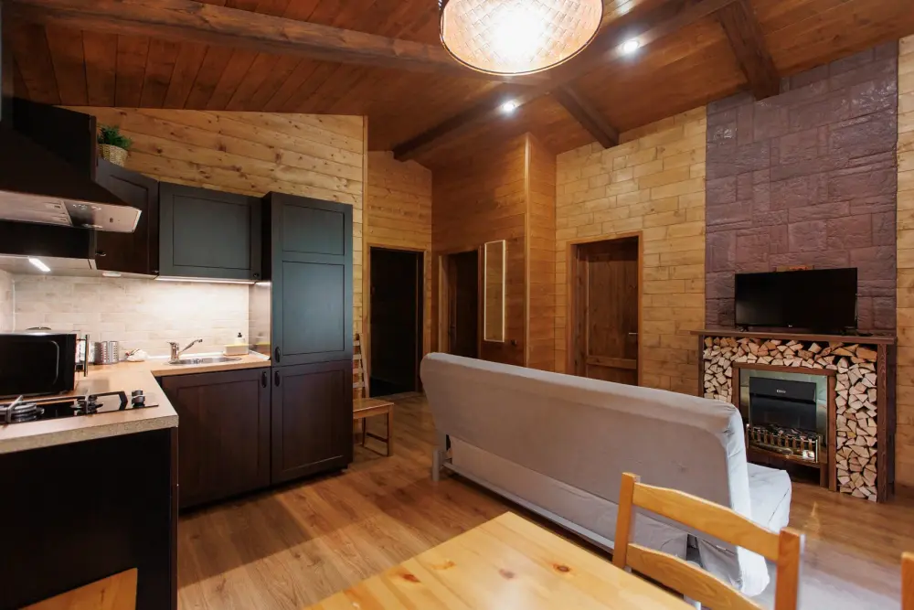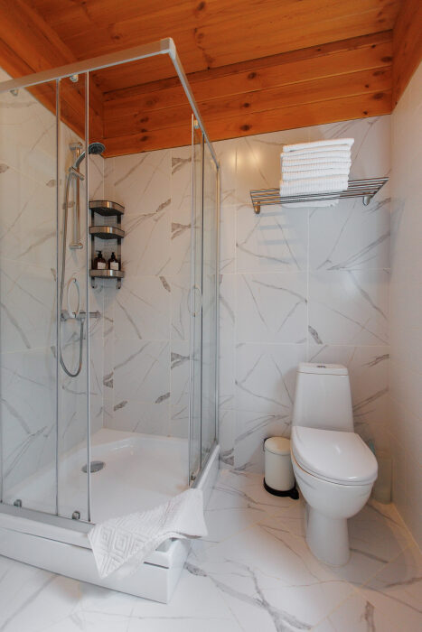 Удобства в шале: отопление (батареи, теплые полы), баня (оплачивается дополнительно), постельное белье, полотенца, плита для приготовления пищи, посуда, столовые приборы, кухонные принадлежности, моющие принадлежности, электрокамин, терраса, обеденная зона на улице.