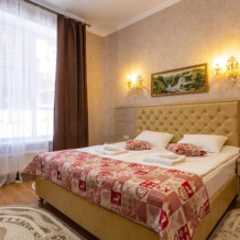 Просторный 3-местный номер площадью с одной двуспальной или двумя раздельными кроватями и раздвижным диваном. Номер выполнен в классическом европейском интерьере. Из окон открывается отличный вид на кавказские горы или хвойный лес и реку.