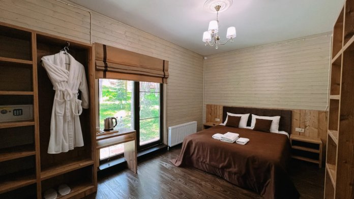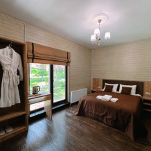 Отдельно стоящий корпус среди хвойного леса. Каждый номер имеет панорамное окно, балкон или террасу и оформлен в классическим европейским стиле с одной двуспальной кроватью.