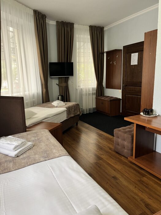 Чистый, комфортабельный номер с одной двуспальной или двумя раздельными кроватями.