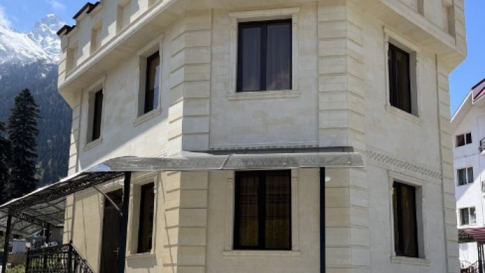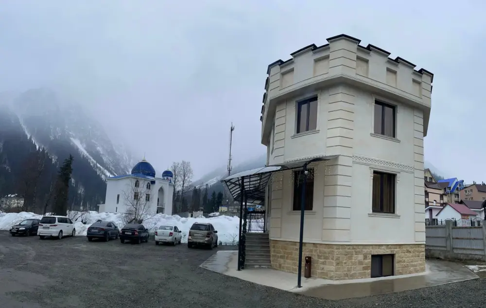 Мини-отель «Castle» расположен в центре курортного поселка Домбай, на берегу реки Аманауз.