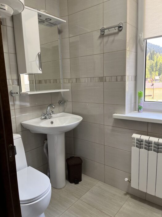 До канатных дорог буквально 5 минут. У нас очень удобное расположение, рядом с нами банк, магазины, кафе, аптека все это буквально через дорогу.