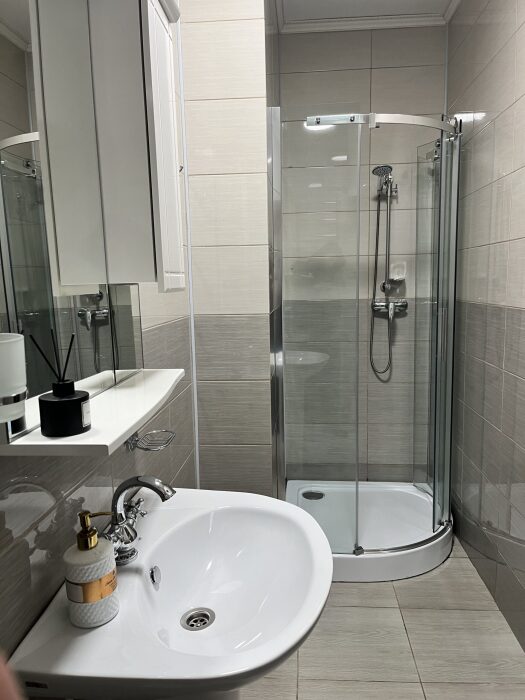 В номере смарт тв, электрочайник, мини холодильник, частично посуда, центральное отопление, ванная комната (душевая кабинка),полотенца, разовое мыло, разовые тапочки, пастельное бельё.