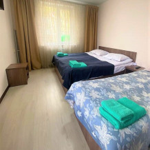 Комфортный семейный номер на трех человек. Двуспальная кровать и одна односпальная кровать. Подойдет для семьи из трех человек или одной дружной компании. В номере есть все удобства для комфортного отдыха гостей.