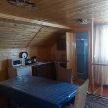 Дом 2-этажный, вход раздельный. На 1 этаже 2 спальни, каминный зал, кухня, санузел. На 2 этаже 3 спальни, холл-кухня, санузел. Дом теплый, отделка - дерево, во дворе мангальная зона и парковка.