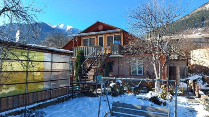 Гостевой дом «У Горной реки» находится в тихом месте, красивый вид из окон на горы, рядом протекает река Теберда.