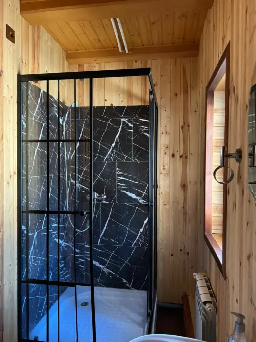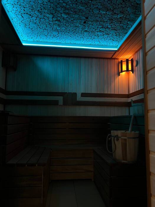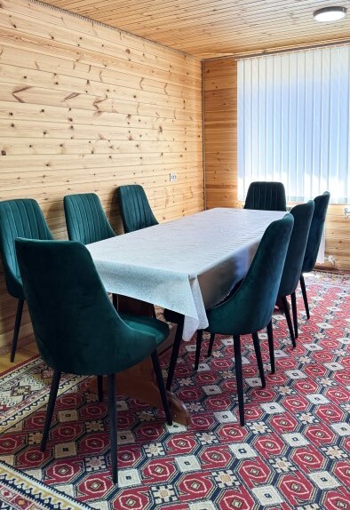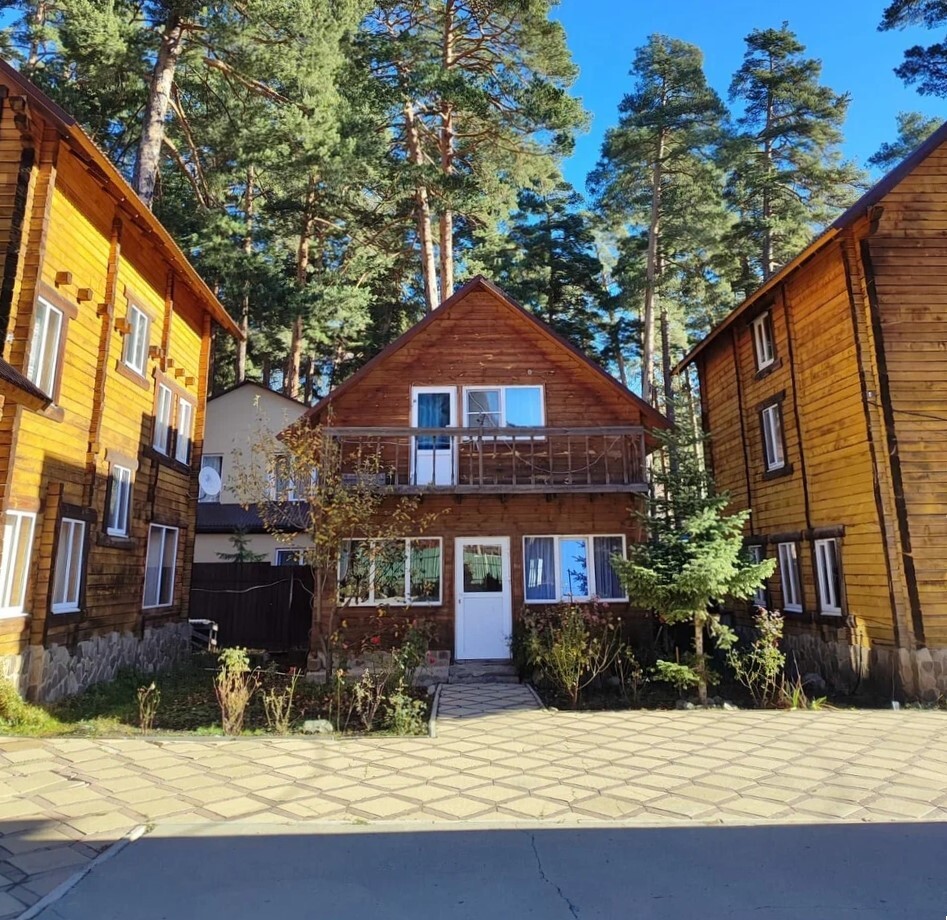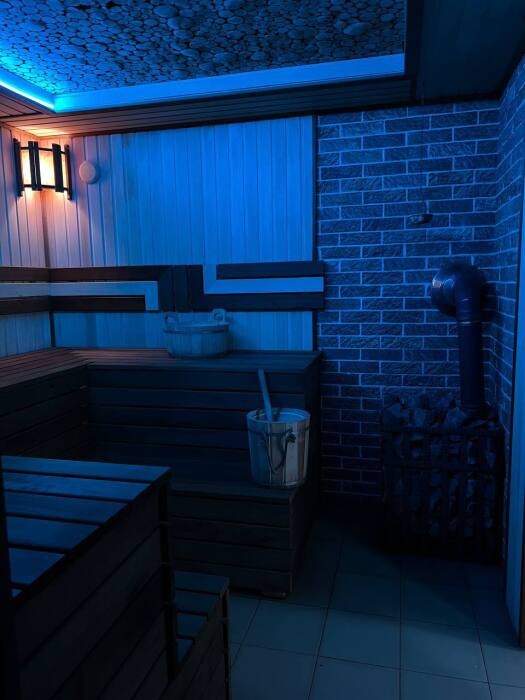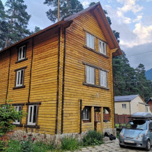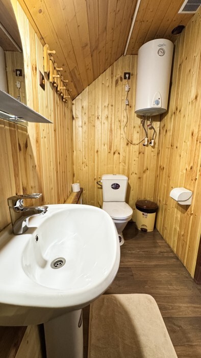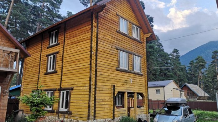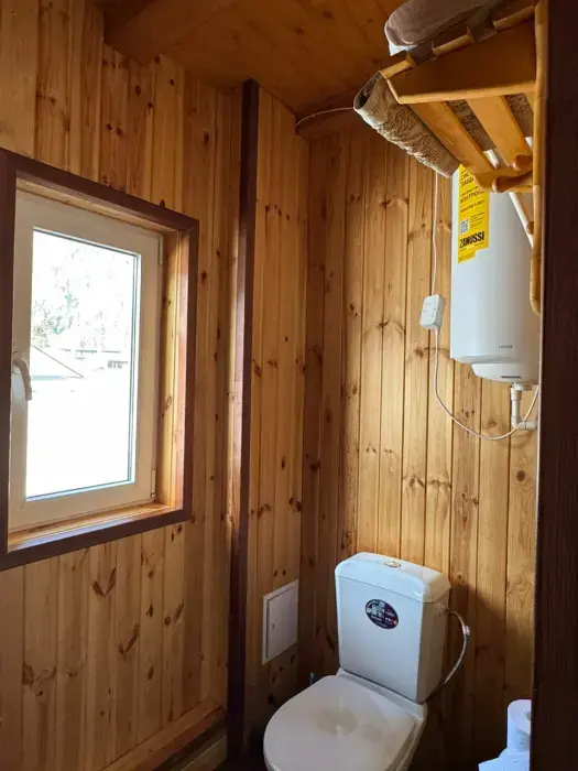 Можно снять весь коттедж «под ключ», с размещением от 9 до 11 гостей (всего на территории 4 коттеджа). В числе удобств гостиная и обеденная зона. В некоторых номерах есть балкон.