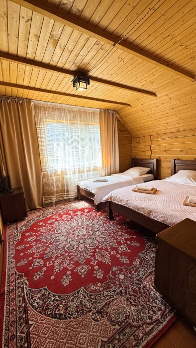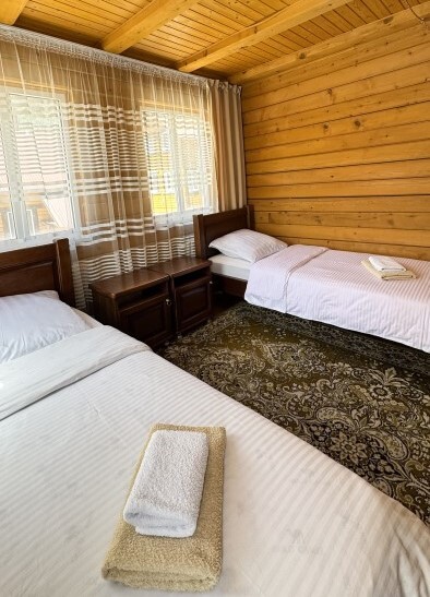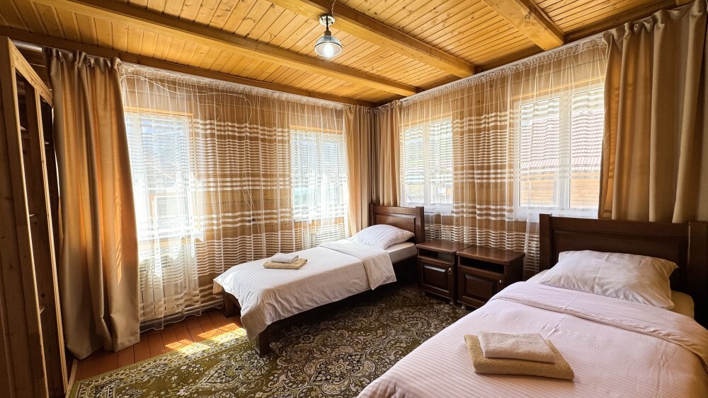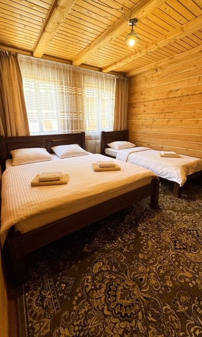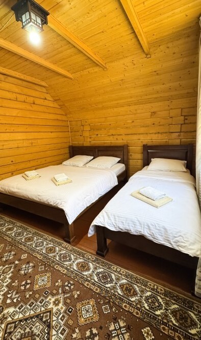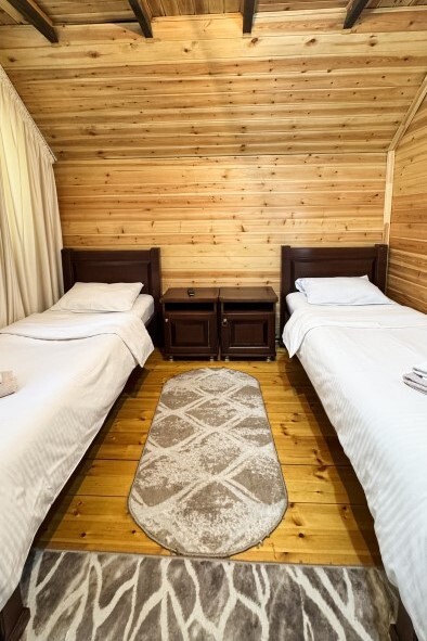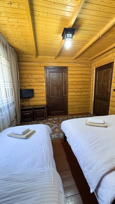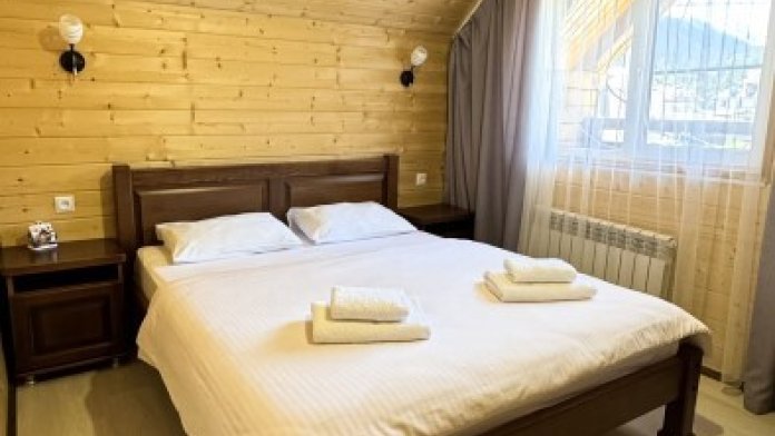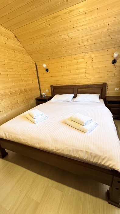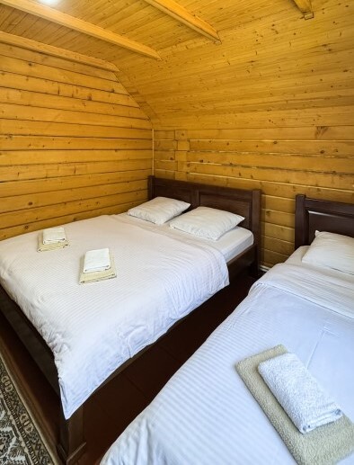 В распоряжении гостей уютные номера с 2-местным и 3-местным размещением в отдельно стоящих домиках. Номера со всеми удобствами: отдельной душевой и туалетом. В холодное время года все комнаты отапливаются. Во всех номерах установлен телевизор с плоским экраном и кабельными каналами.