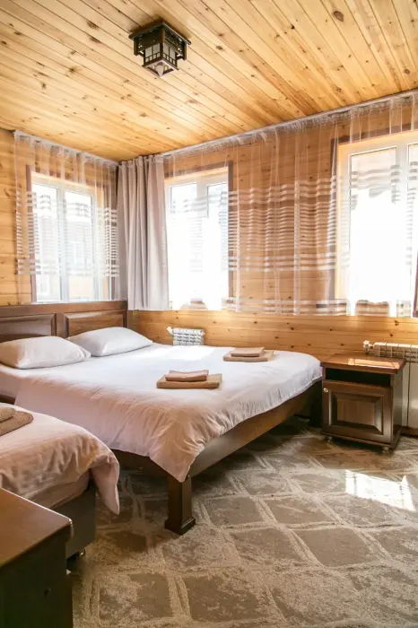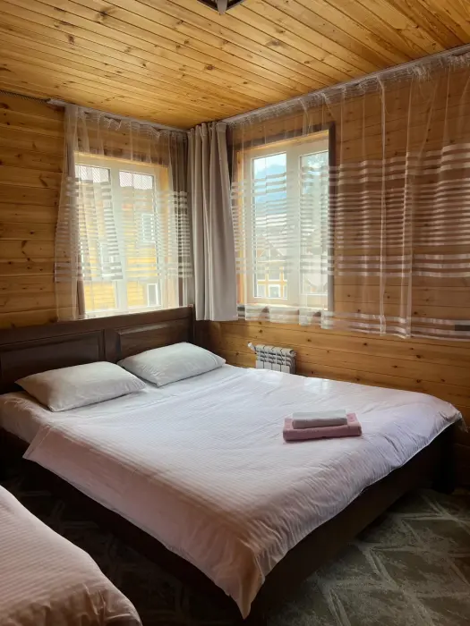 Наша база отдыха располагается в самом сердце п. Архыз. Спуск к речке занимает около 5 минут. В пешей доступности расположены кафе, рестораны и магазины. В 10 минут езды на авто расположена канатная дорога.