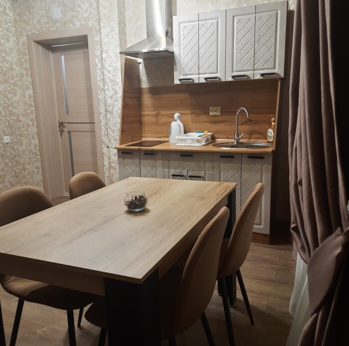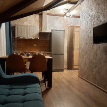 Студия с кухней, расположены на третьем этаже с балконом с шикарным панорамным видом на горы. Состоят из одной большой комнаты, выделены зоны гостиной, кухни и спальни.