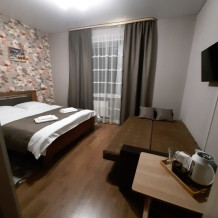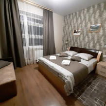 Состоят из двух комнат: гостиной и спальни. В гостиной есть кухонная зона с большим обеденным столом, и зона отдыха с большим диваном и телевизором. В спальне большая двуспальная кровать с ортопедическим матрасом, шкаф для одежды.