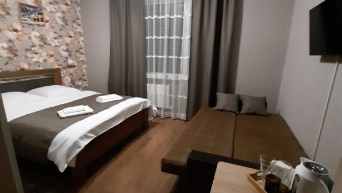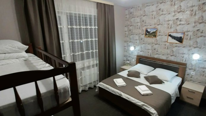 Апартаменты с кухней, расположены на третьем этаже с балконом с шикарным панорамным видом на горы.