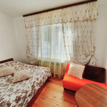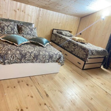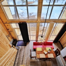 Гостевой комплекс состоит из вилл, шале и гостиничных номеров двух типов. Виллы барнхаус вмещают от 7 до 11 человек. Мини-кухня включает электрический чайник, микроволновую печь, варочную панель, набор посуды и холодильник. Перед каждым домиком терраса и свой мангал. Это 3 новых двухэтажных коттеджа, полностью из натуральных и безопасных для здоровья и окружающей среды хвойных пород дерева, что обеспечивает отличный микроклимат. Дома отличаются стильным декором с минимальным количеством стен, благодаря чему воздух в доме свободно циркулирует, оборудованы всем необходимым для комфортного проживания. Завораживает необыкновенный панорамный вид из окна на горы и хвойный лес. Эко-виллы с террасой, оборудованы спальнями, залом и ванной комнатой.
