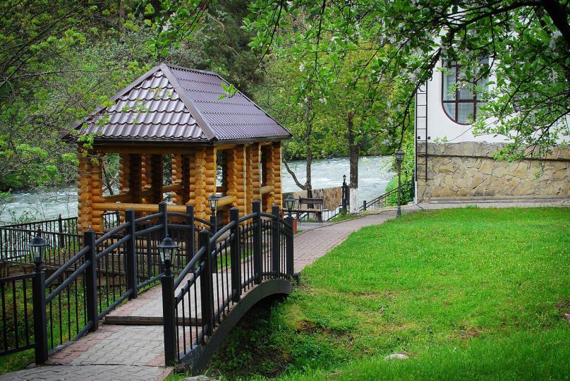 На территории пансионата - бесплатная охраняемая парковка, крытая площадка с мангалом для приготовления шашлыка.
