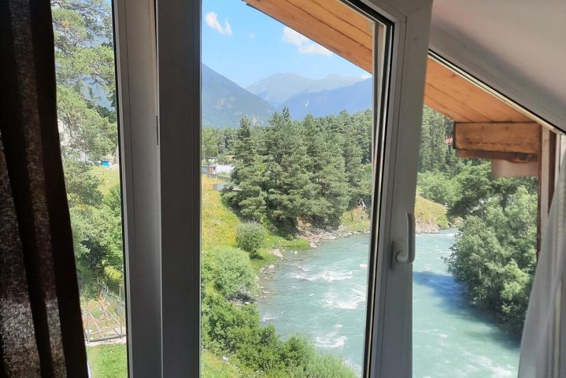 №2 - Этаж: 1. Описание: балкон с видом на реку, совмещен с номером № 1. Комплектация: 2 раздельные 1,5 сп. кровати, диван раскладной, LCD телевизор 32», холодильник, стол-тумба, 2 стула, гардероб.