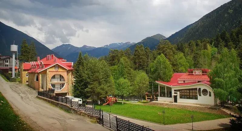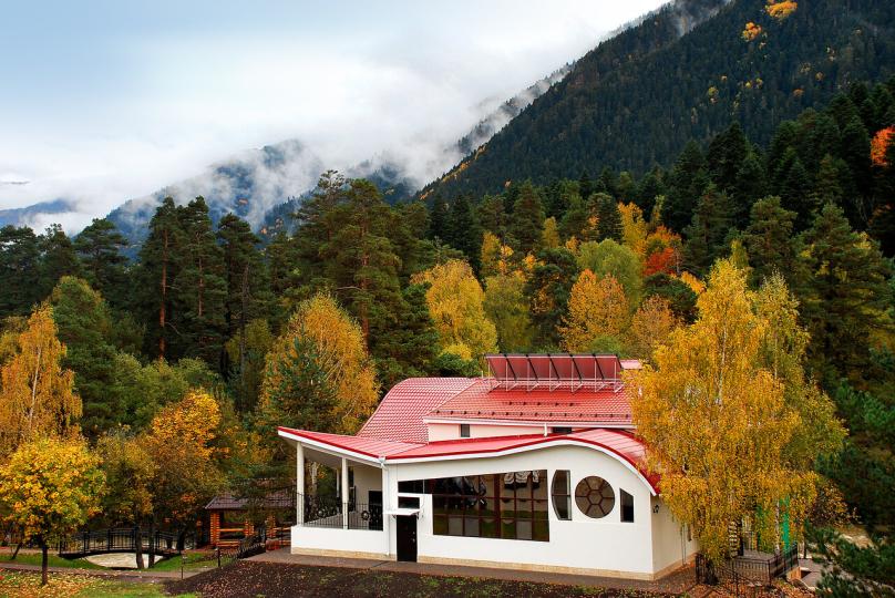 Трехэтажное здание пансионата, построенное в альпийском стиле по индивидуальному проекту, готово принять 65 человек и располагает номерами класса: Эконом, Стандарт, Стандарт Улучшенный, Полулюкс и Люкс, со всеми удобствами.