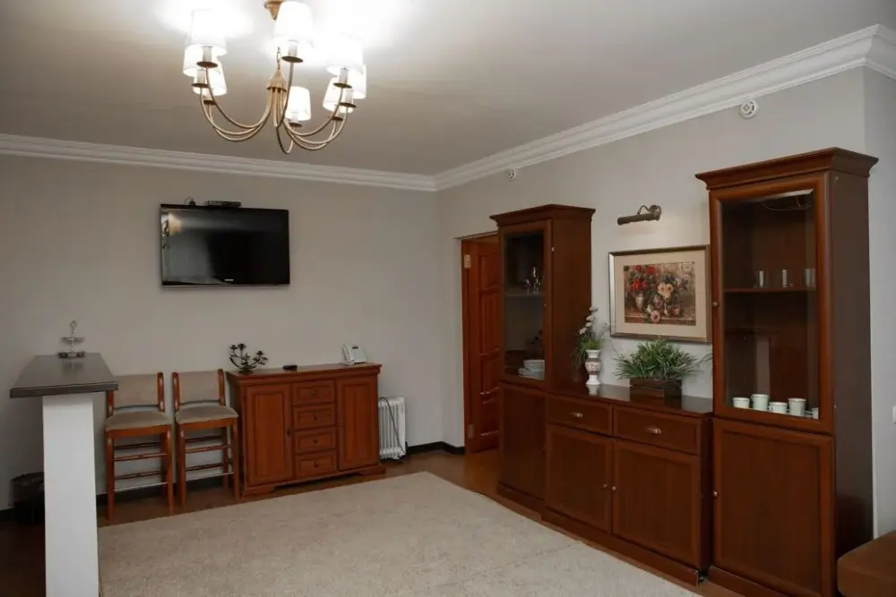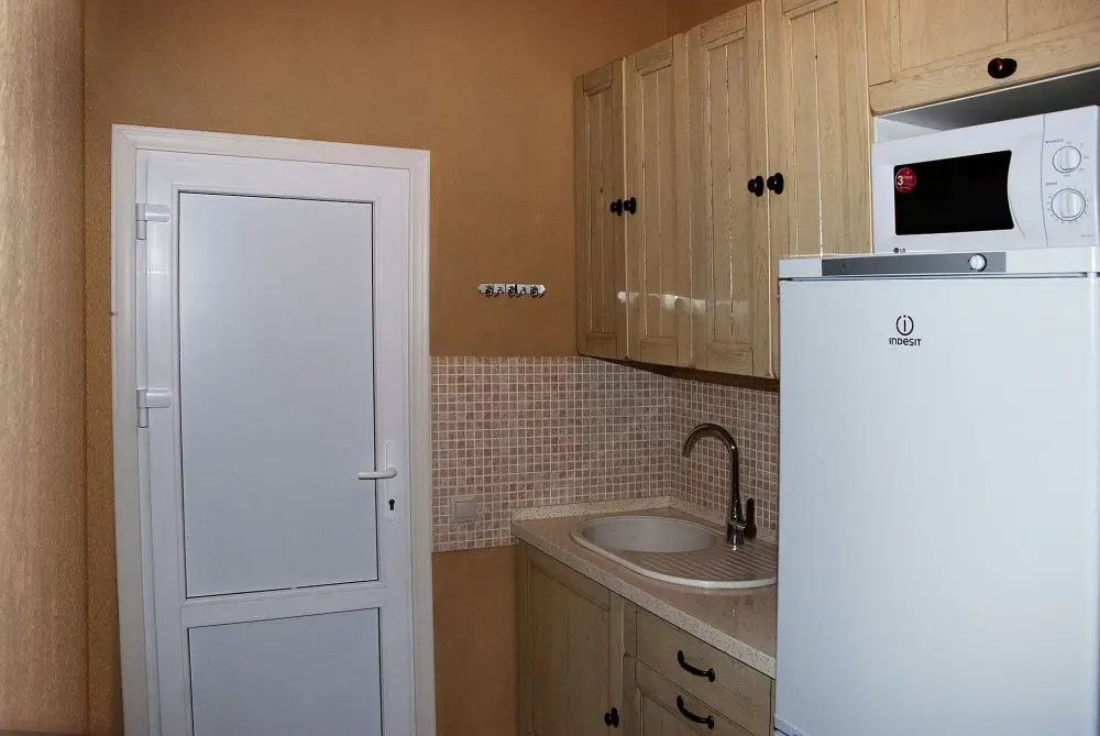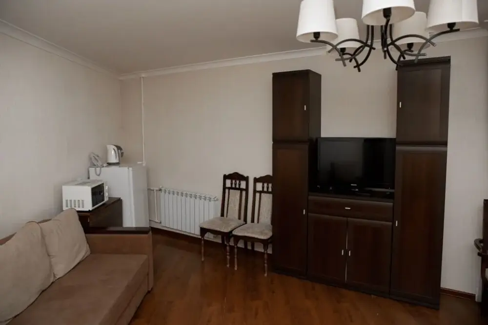 Комплектация: 1,5 сп. кровать, холодильник, LCD телевизор 32», тумба, вешалка.