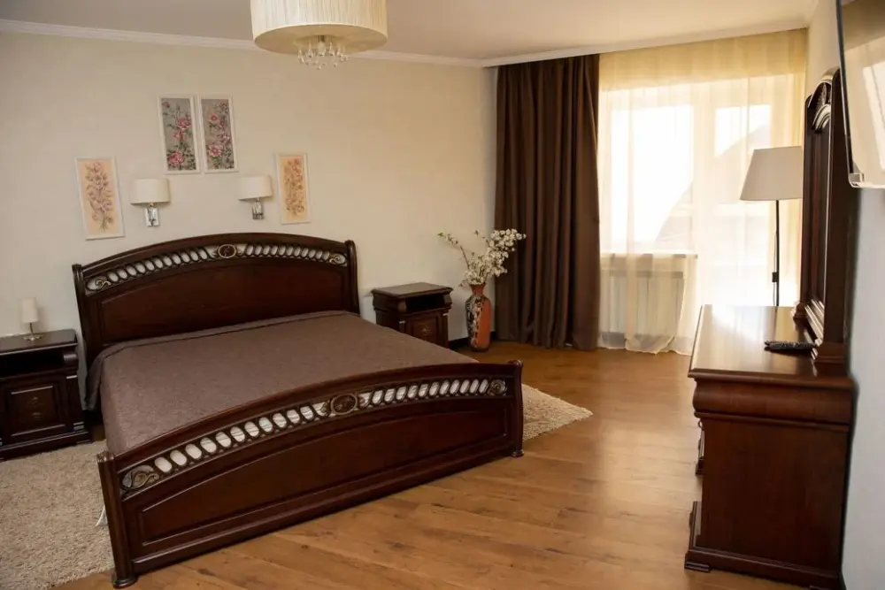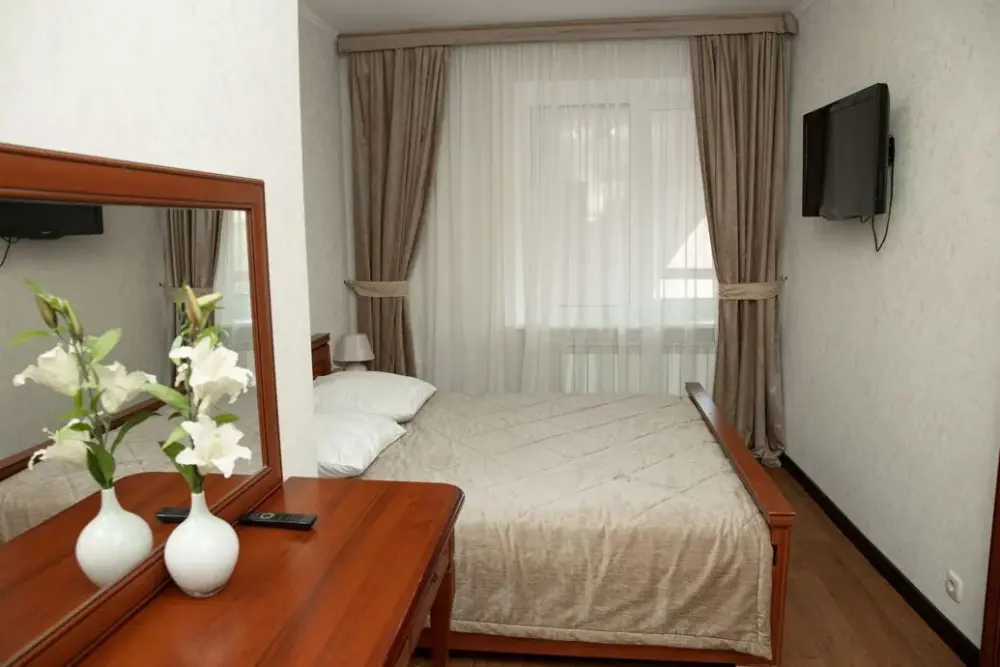 №24 - Этаж: 3. Описание: комнаты смежные, без балкона, вид из окна на реку. Комплектация: 2-спальная кровать, шкаф, LCD телевизор 32», 2 прикроватные тумбочки. 2 комната: диван, LCD телевизор 32», стол-тумба, холодильник.