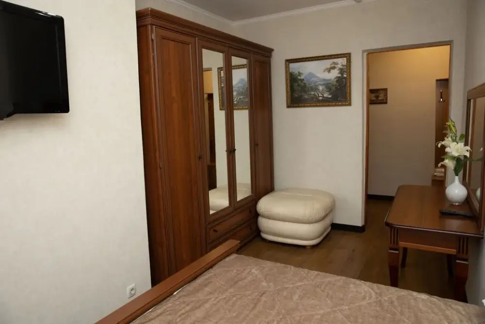2-я комната: 2-спальная кровать, диван раскладной, LCD телевизор 32», спутниковое телевидение триколор, свч-печь, холодильник, посуда.