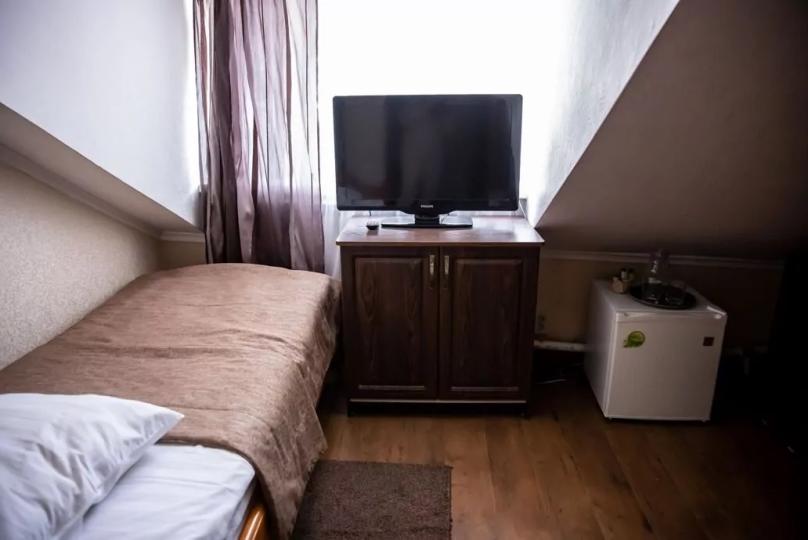Блочный номер, отделен от общего коридора, общий санузел. Комплектация: 1,5 сп. кровать, диван, холодильник, LCD телевизор 32», тумба, вешалка.