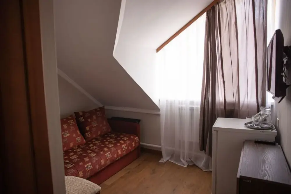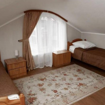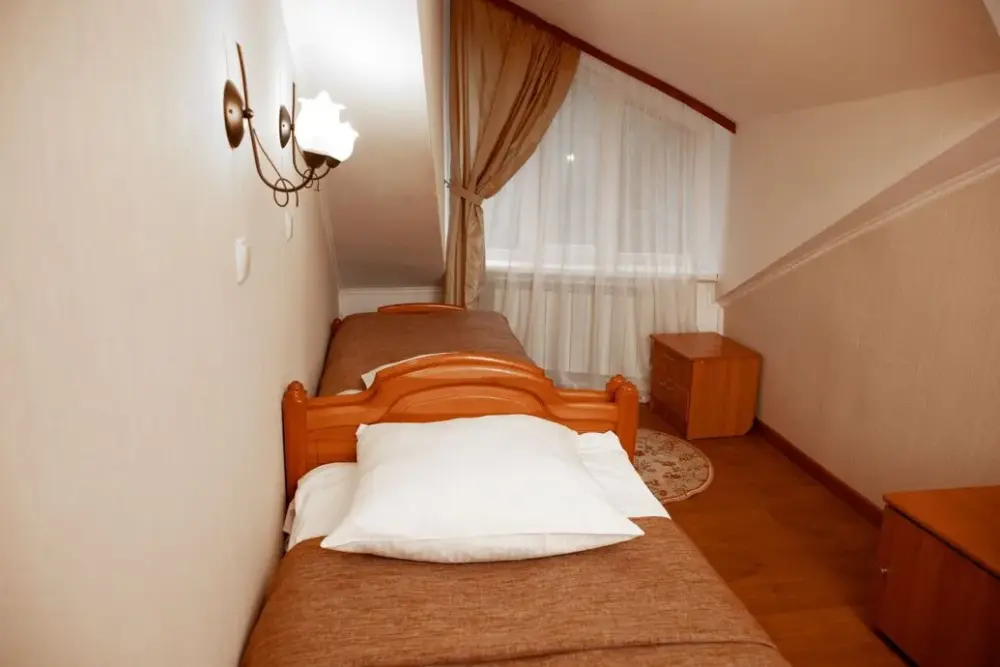 Номерной фонд Эконом класса состоит из 5 номеров, которые располагаются на 3 мансардном этаже, блочная система номеров (2+2), в номере раздельные кровати, без балкона.