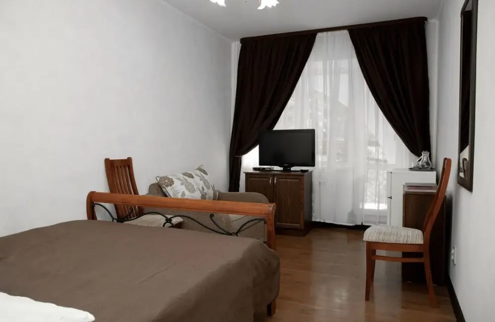 №11 - Этаж: 2. Описание: балкон. Комплектация: двуспальная кровать, диван раскладной, LCD телевизор 32», холодильник, стол-тумба, 2 стула, гардероб.